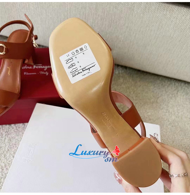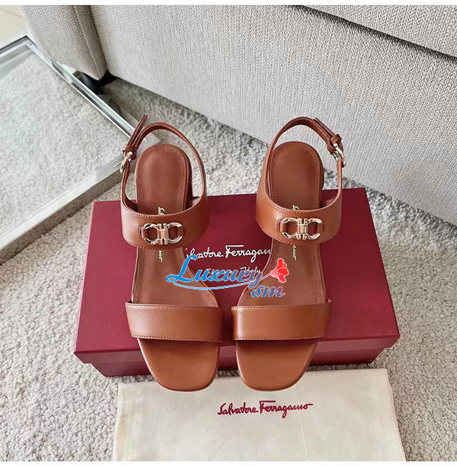 Ferragamo-01C094 페라가모 브라운 카프스킨 간치니 샌들