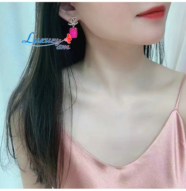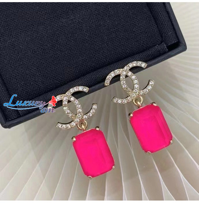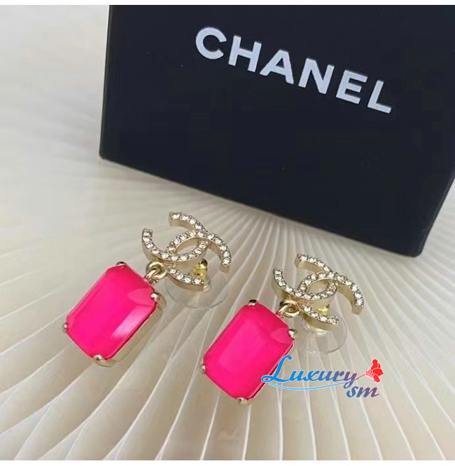 CHANEL-06081 샤넬 핑크 크리스탈 장식 이어링