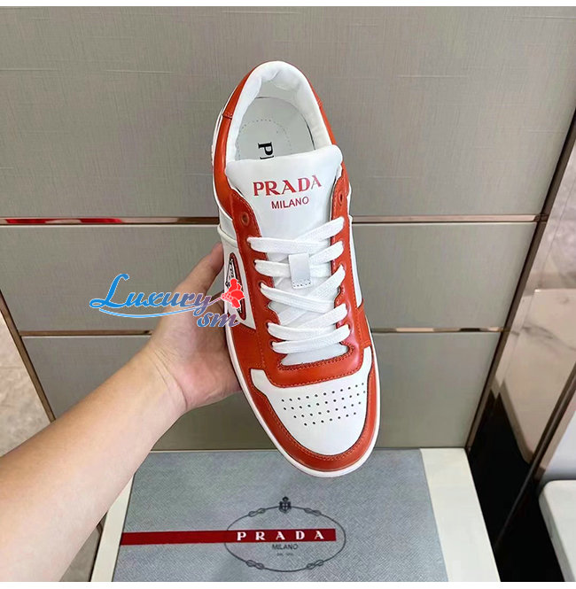 PRADA-2EE364 프라다 오렌지 다운타운 가죽 스니커즈