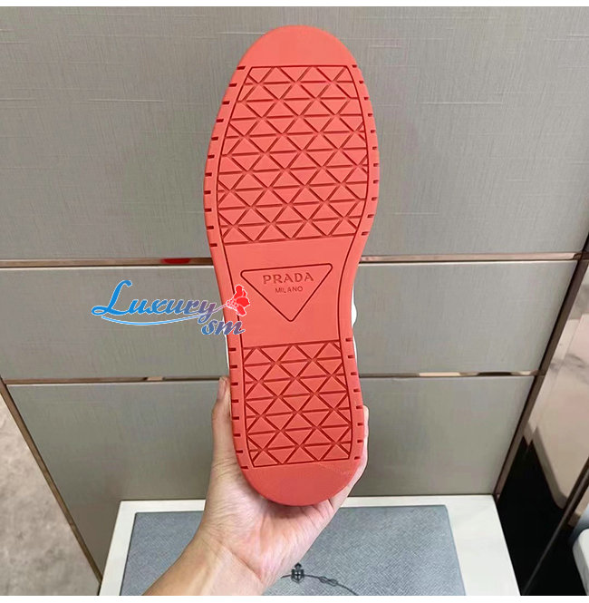 PRADA-2EE364 프라다 화이트 송아지 가죽 트라이앵글 로고 스니커즈
