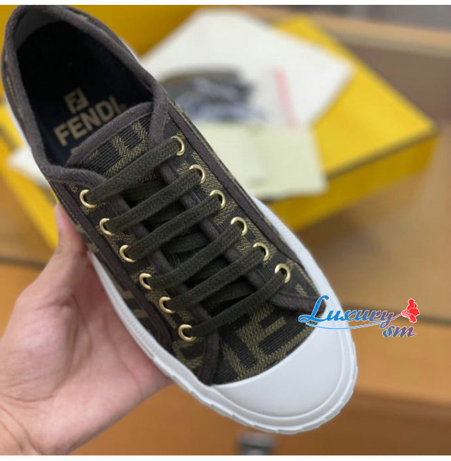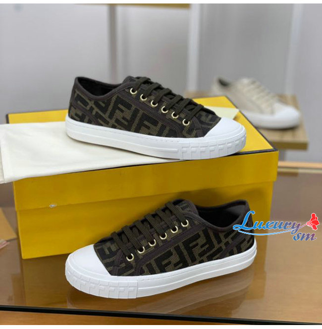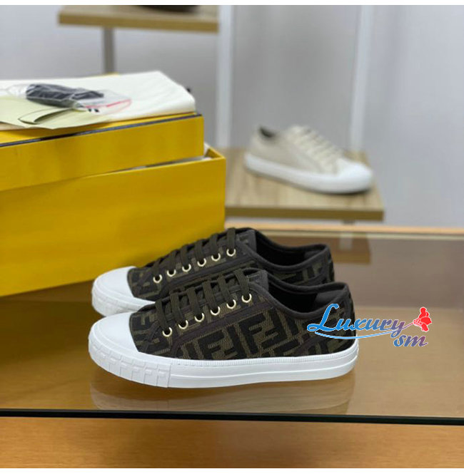 FENDI-7E1553 펜디 브라운 더블 F 펜디 도미노 로우탑 스니커즈 남여공용