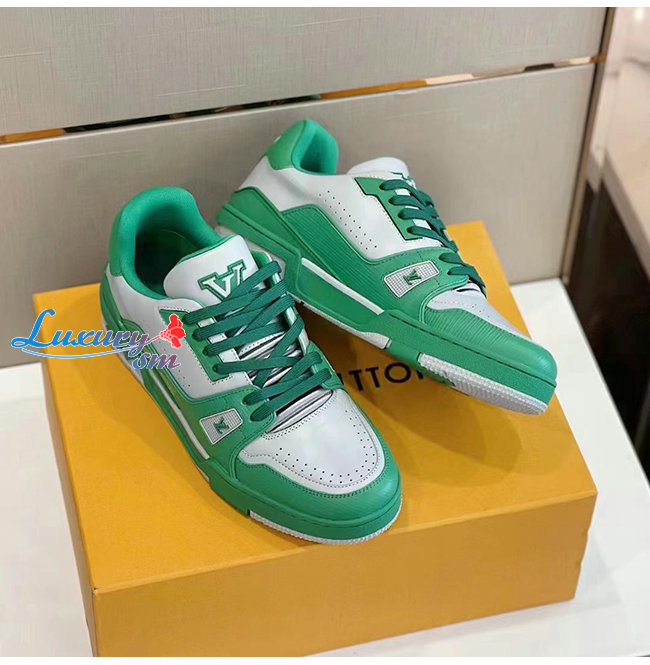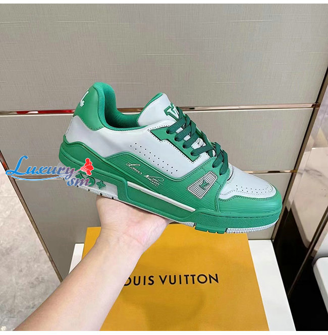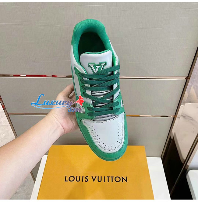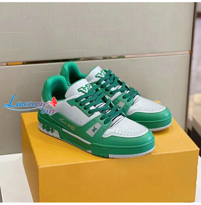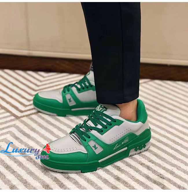 [스페셜오더]LOUIS VUITTON-1A8QAI 루이비통 그린 송아지 가죽 LV 트레이너 스니커즈