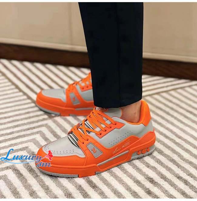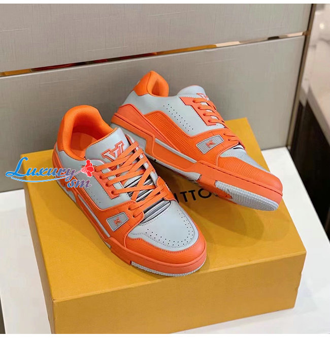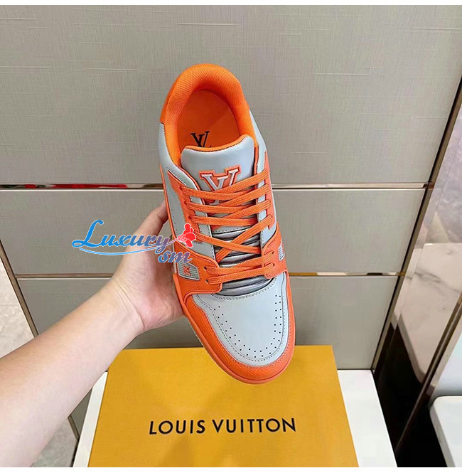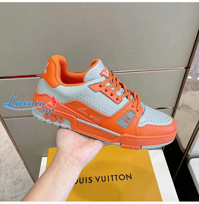 LOUIS VUITTON-1AA6T9 루이비통 오렌지/그레이 에삐 레더 LV 트레이너 스니커즈