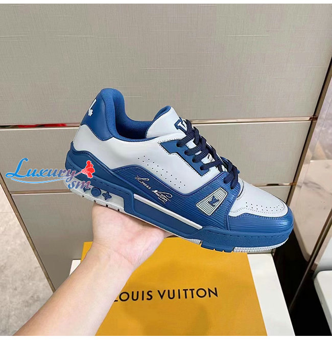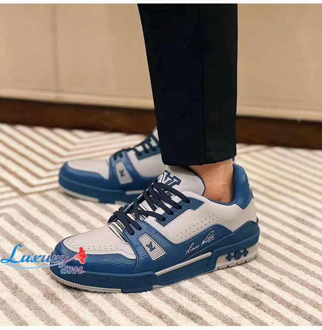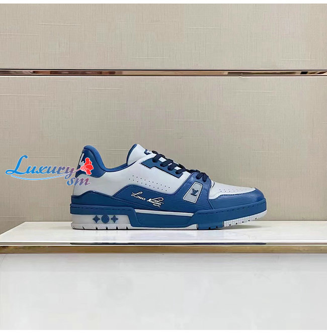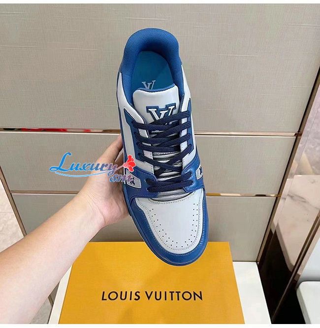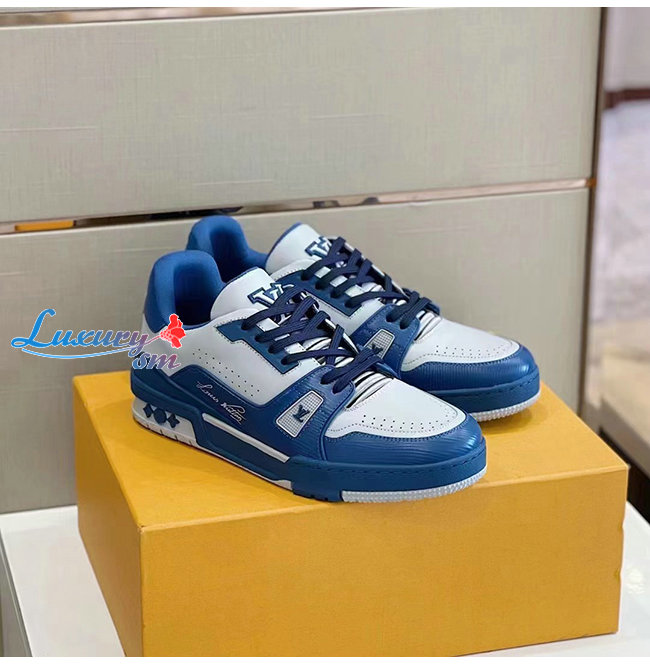 LOUIS VUITTON-1A8AGO 루이비통 블루/화이트 송아지 가죽 LV 트레이너 스니커즈