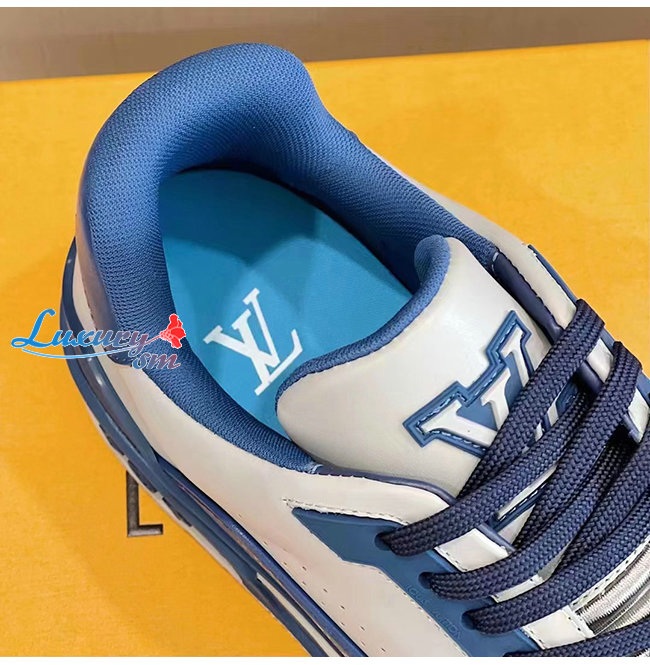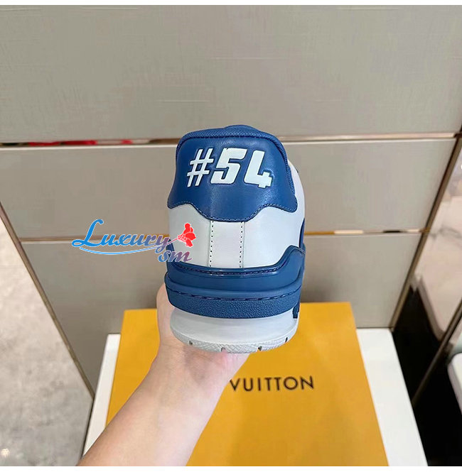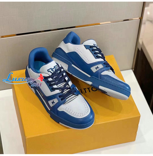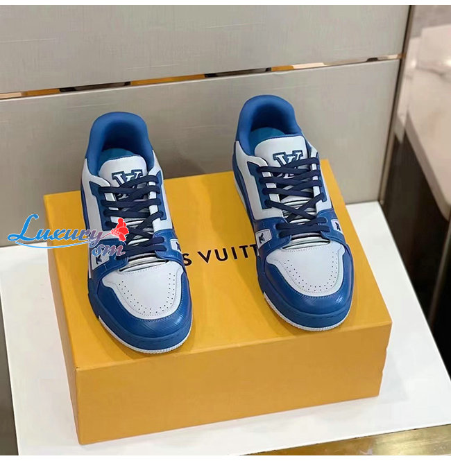 LOUIS VUITTON-1A8ZT4 루이비통 화이트/블루 송아지 가죽 LV 트레이너 스니커즈