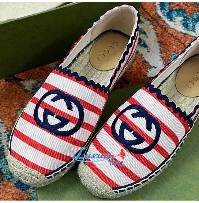 GUCCI-694434 9860 구찌 아이보리/블루 인터로킹 G 스트라이프 에스파드리유