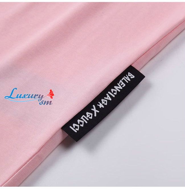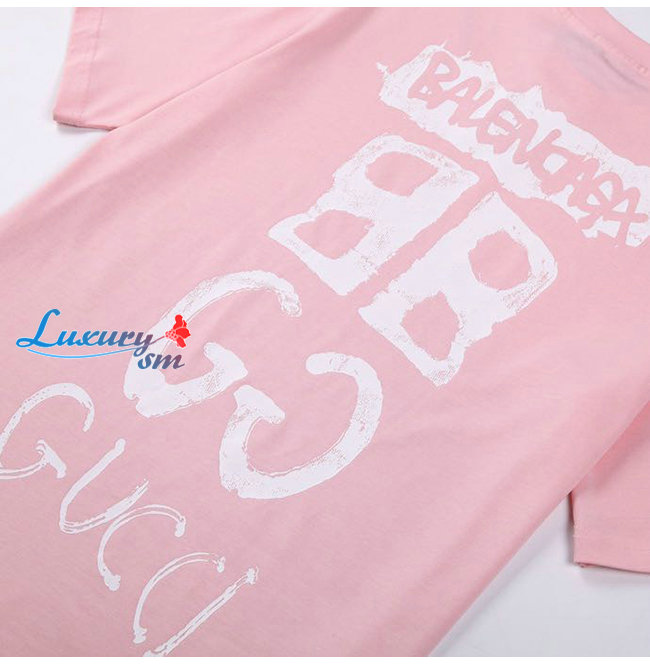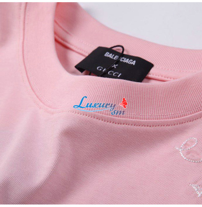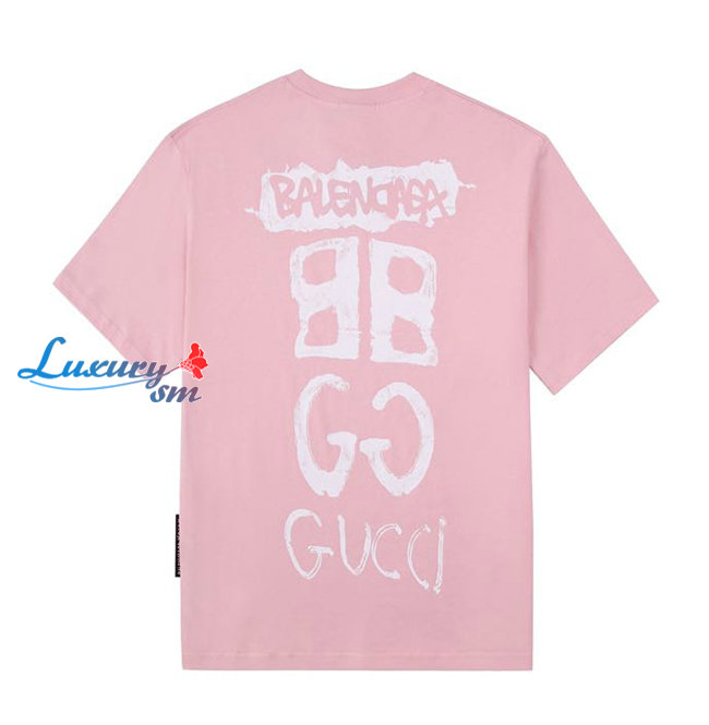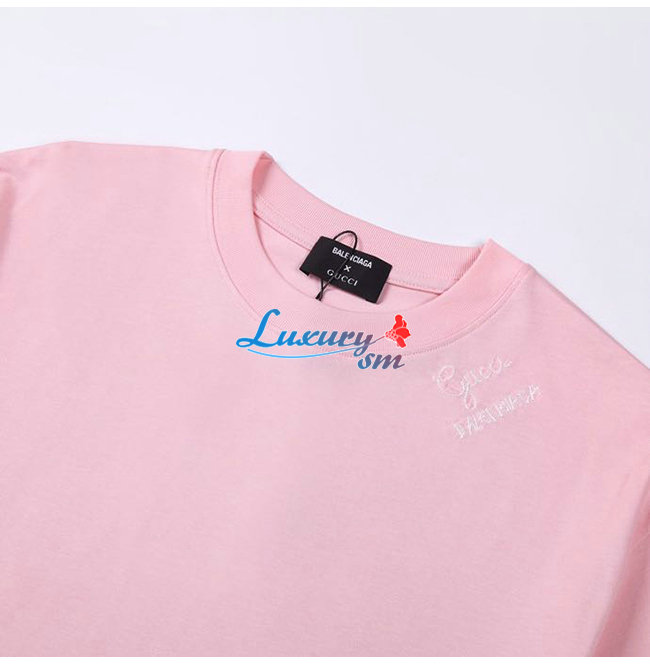 GUCCI-07184 구찌 라이트 핑크 구찌 X 발렌시아가 콜라보 프린트 장식 티셔츠 남여공용