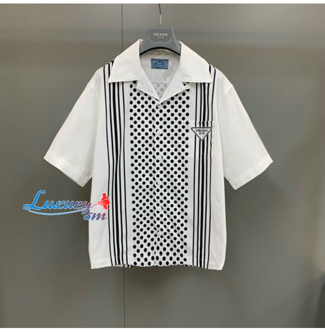 PRADA-072615 프라다 화이트 프린트 장식 셔츠 남여공용