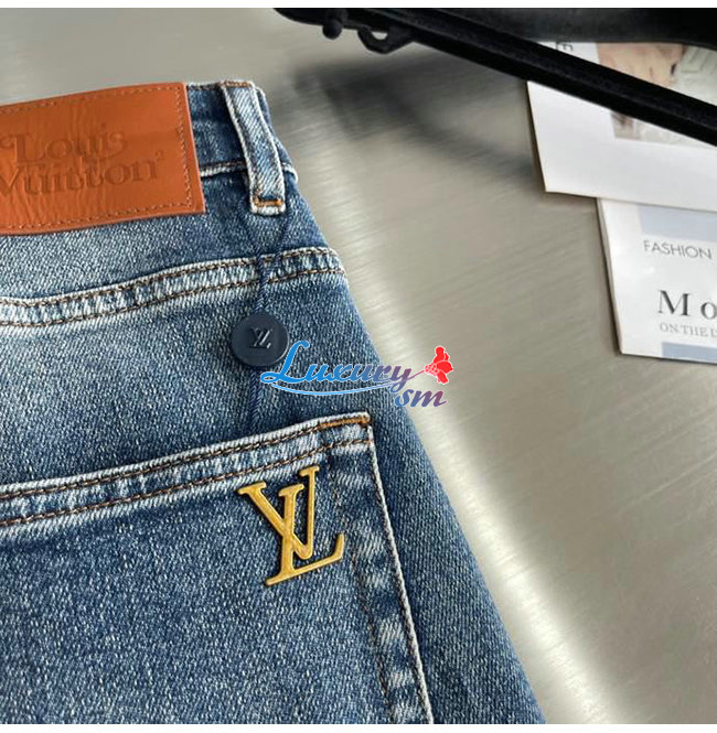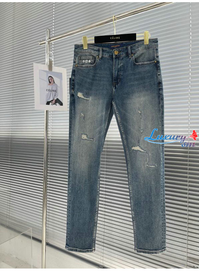 LOUIS VUITTON-07289 루이비통 블루 메탈 LV 시그니처 디테일 청바지 남성용