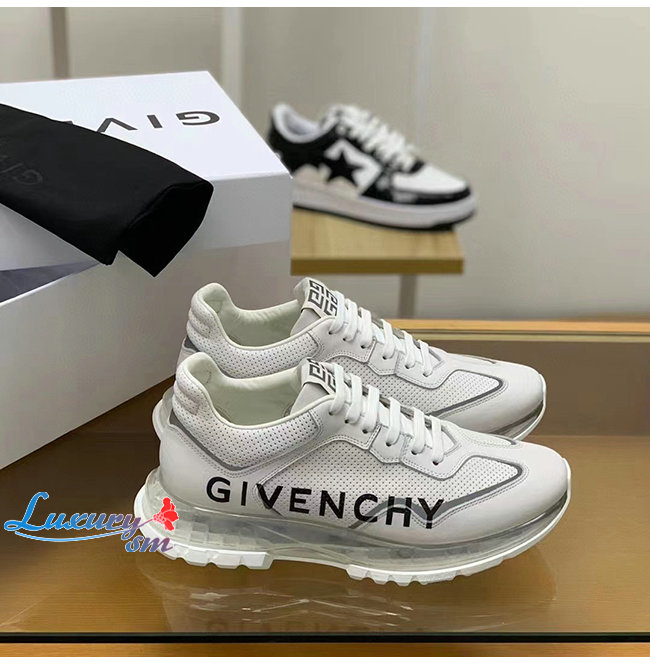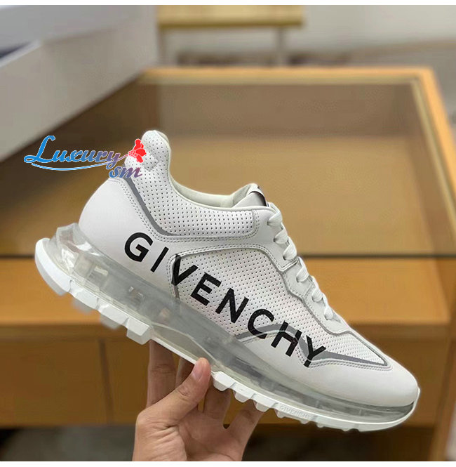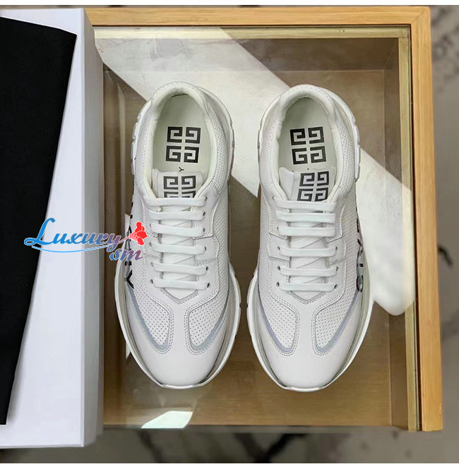 GIVENCHY-BH005CH 지방시 화이트 퍼포레이티드 가죽 GIV 러너 스니커즈 남성용