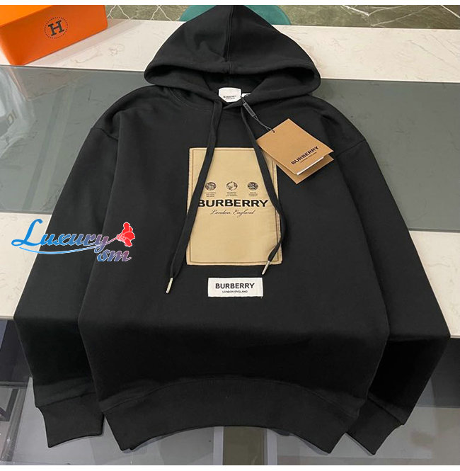 BURBERRY-80571001 버버리 블랙 라벨 아플리케 코튼 후디 남여공용