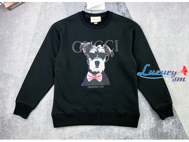 GUCCI-08122 구찌 블랙 도그 프린트 장식 스웨트셔츠 남여공용