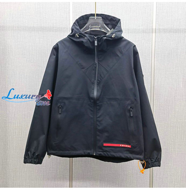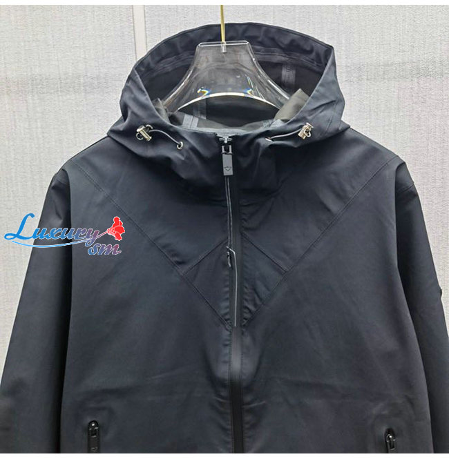 PRADA-08243 프라다 블랙 트라이앵글 로고 바람막이 후드 재킷 남성용