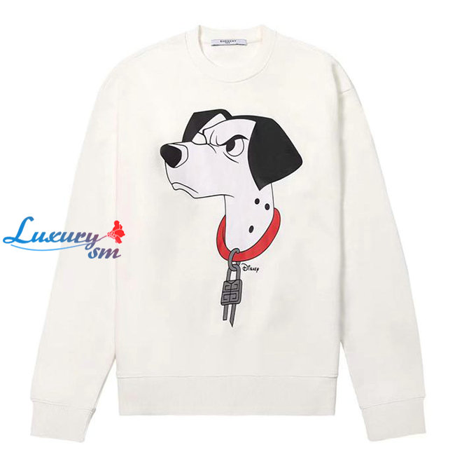 GIVENCHY-09026 지방시 화이트 도그 프린트 장식 스웨트셔츠 남여공용