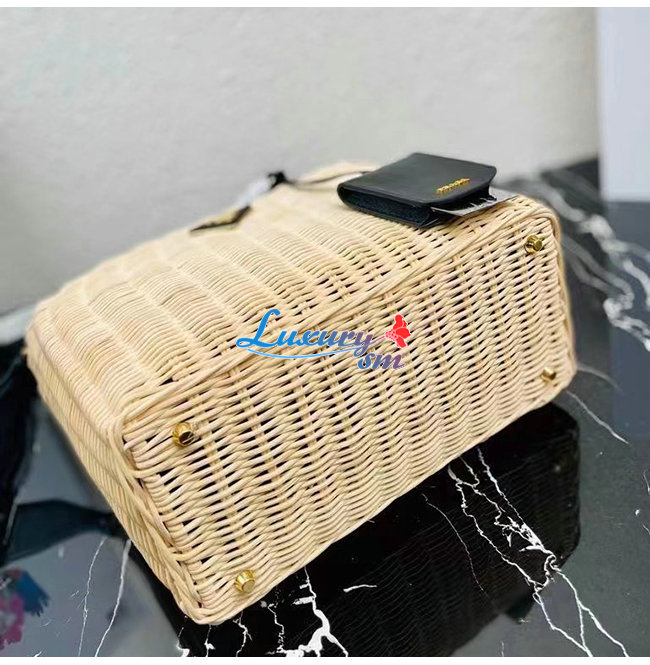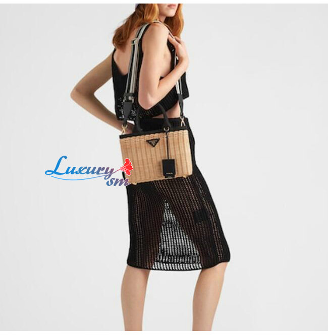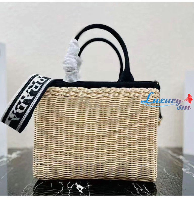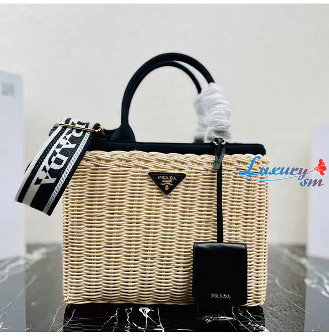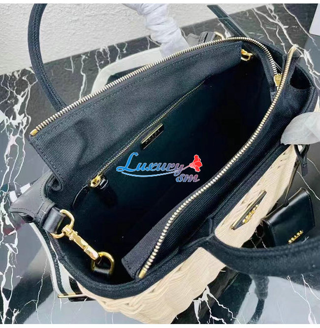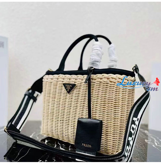 [스페셜오더]PRADA-1BG835 프라다 블랙/베이지 위커 토트 백