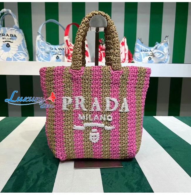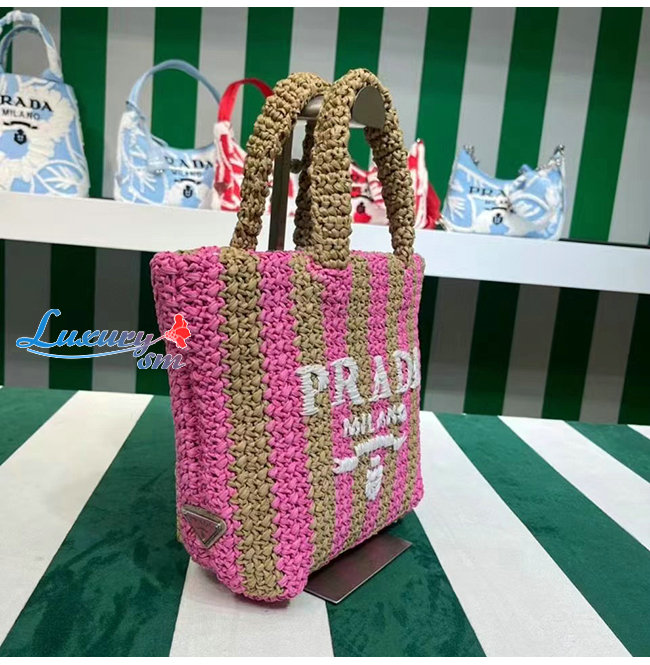 [스페셜오더]PRADA-1BG422 프라다 탠/핑크 라피아 스몰 토트 백