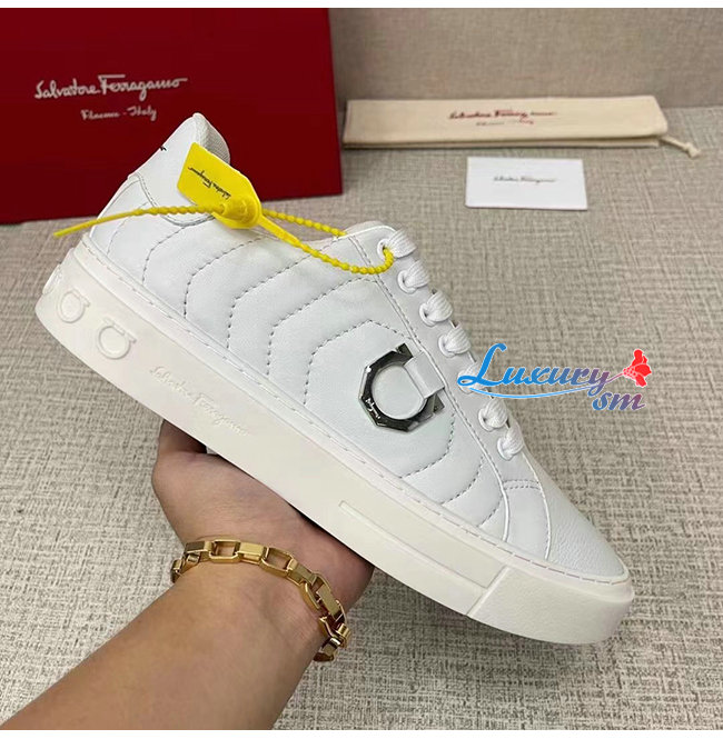 Ferragamo-020776 페라가모 화이트 고트스킨 간치니 스니커즈