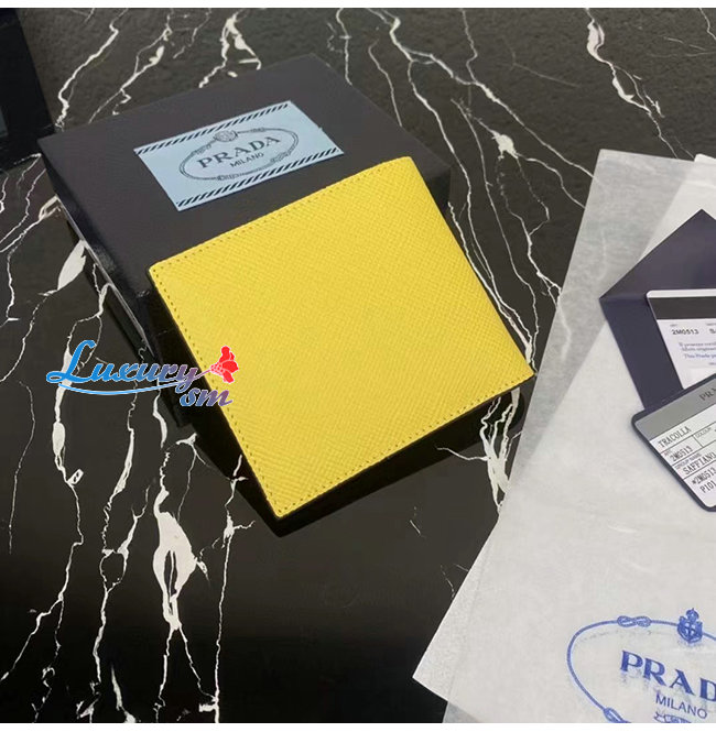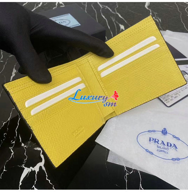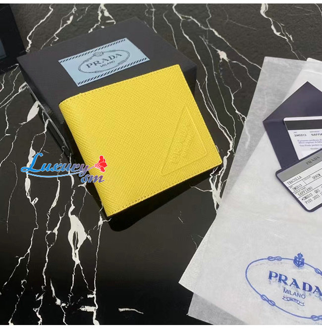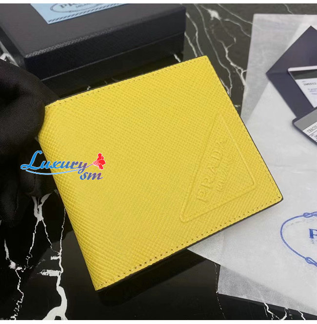 [스페셜오더]PRADA-2MO513 프라다 옐로우 엠보싱 트라이앵글 로고 지갑