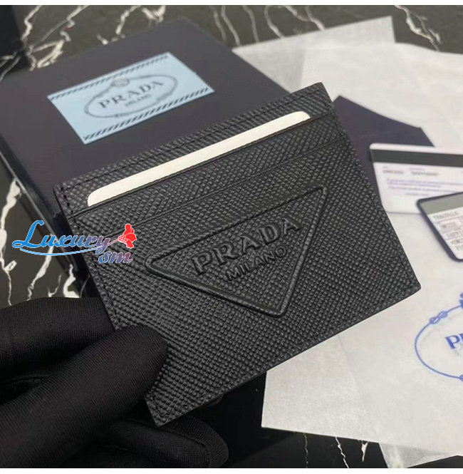 [스페셜오더]PRADA-2MC223 프라다 블랙 엠보싱 트라이앵글 로고 카드 홀더