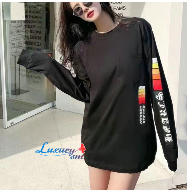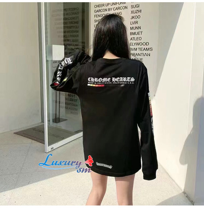 CHROMEHEARTS-09119 크롬하츠 블랙 프린트 장식 긴팔 티셔츠 남여공용