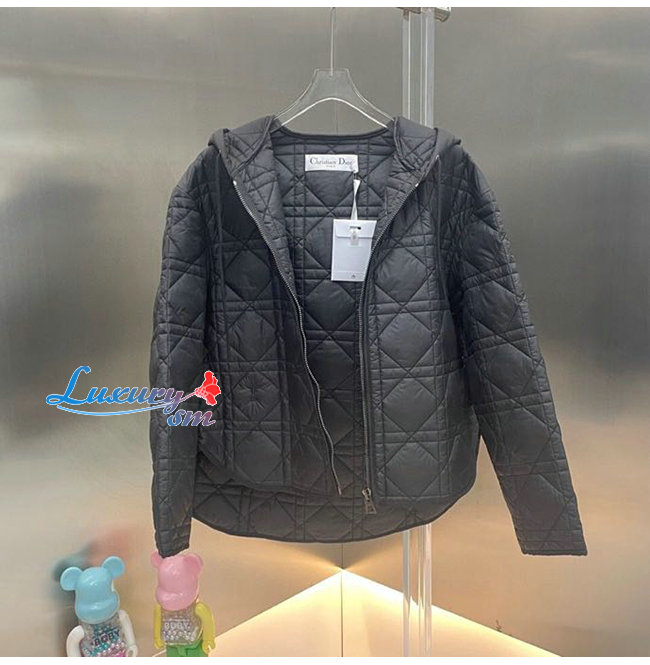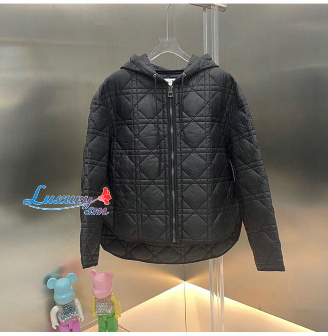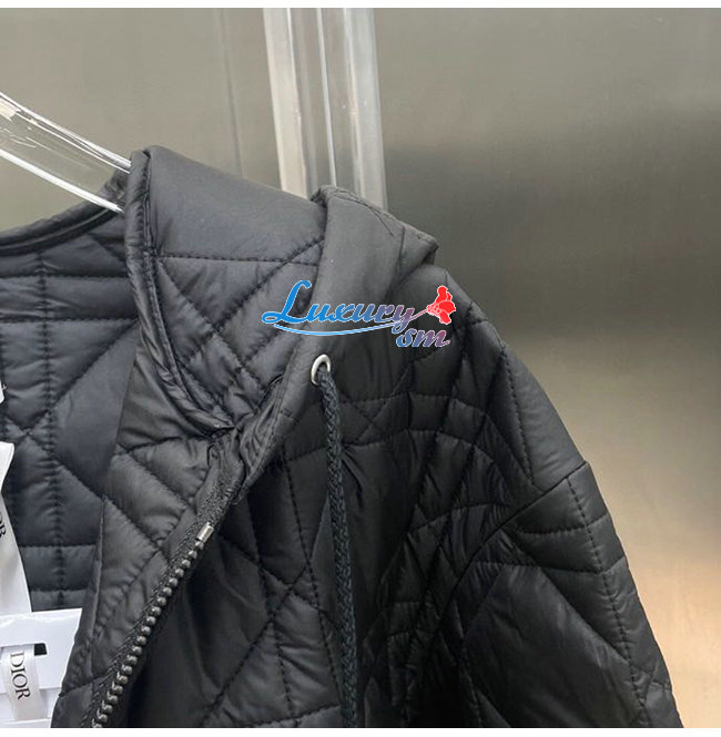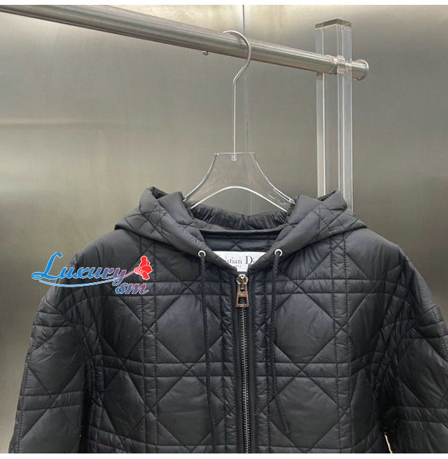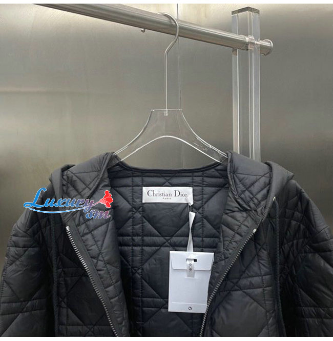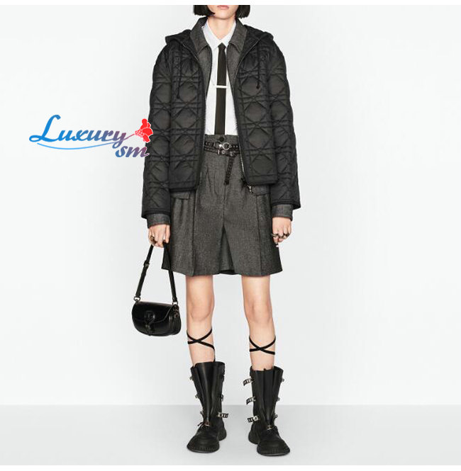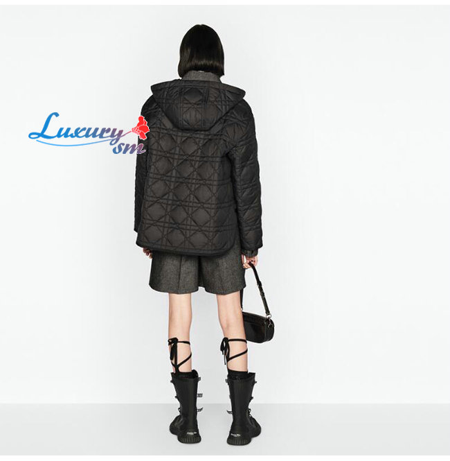 DIOR-247C47 디올 블랙 매크로까나쥬 후드 피코트 여성용