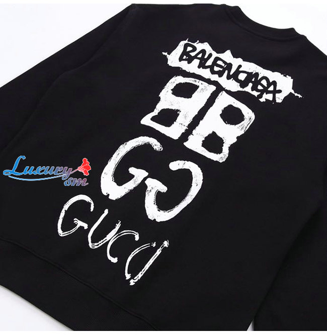 GUCCI-092012 구찌 블랙 구찌 X 발렌시아가 콜라보 프린트 장식 스웨트셔츠 남여공용