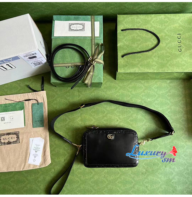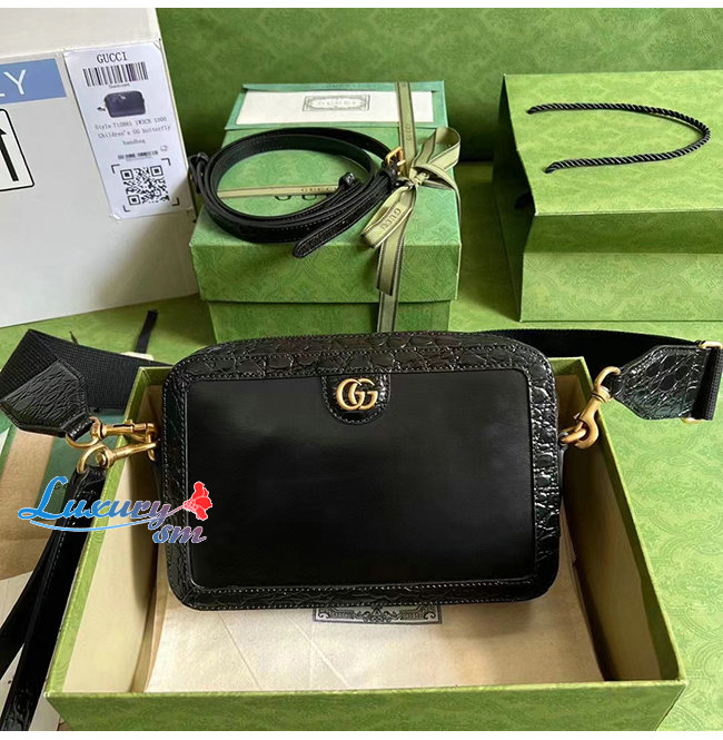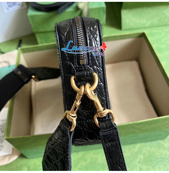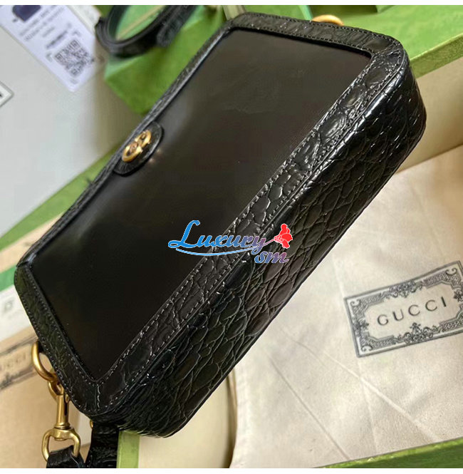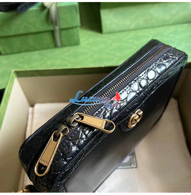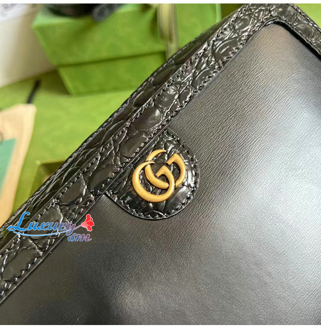 [스페셜오더]GUCCI-710861 1000 구찌 블랙 크로커다일 트리밍 더블 G 숄더 백