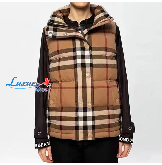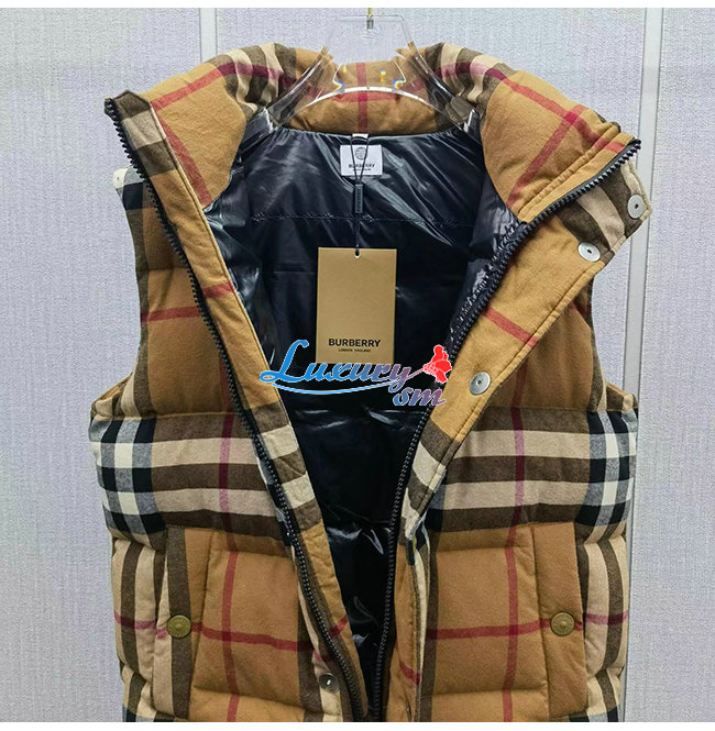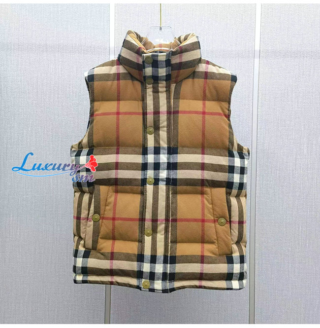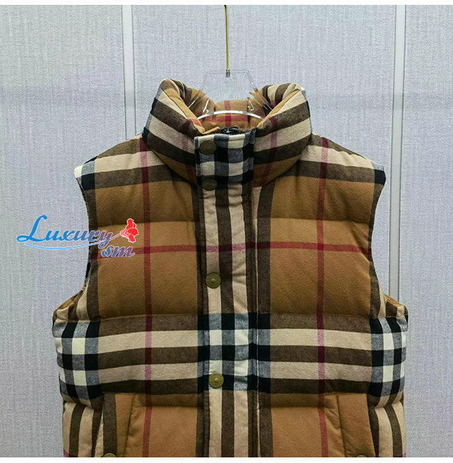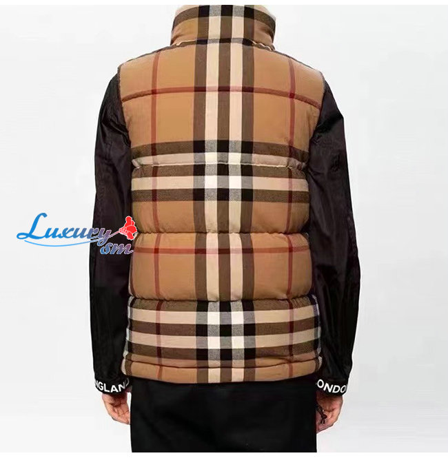 BURBERRY-101914 버버리 베이지 체크 무늬 패딩 조끼 남성용