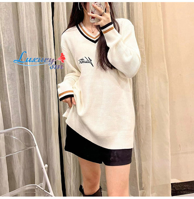 LOUIS VUITTON-110812 루이비통 아이보리 니트 코튼 V 넥 스웨터 남여공용