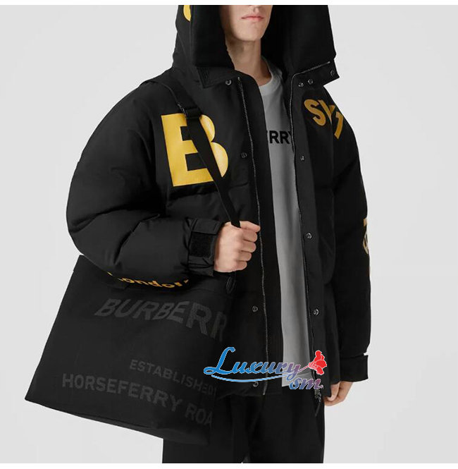 [스페셜오더]BURBERRY-80582021 버버리 블랙 호스페리 프린트 나일론 토트