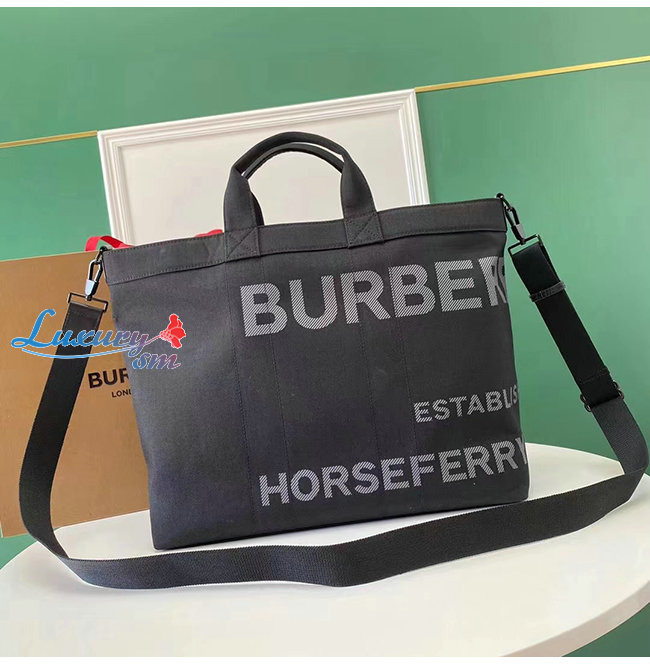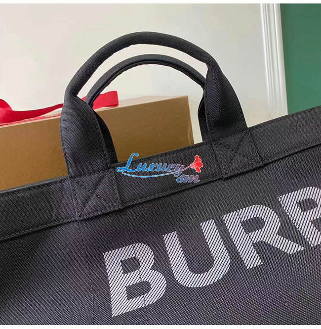 [스페셜오더]BURBERRY-80262331 버버리 블랙 로고 프린트 나일론 토트