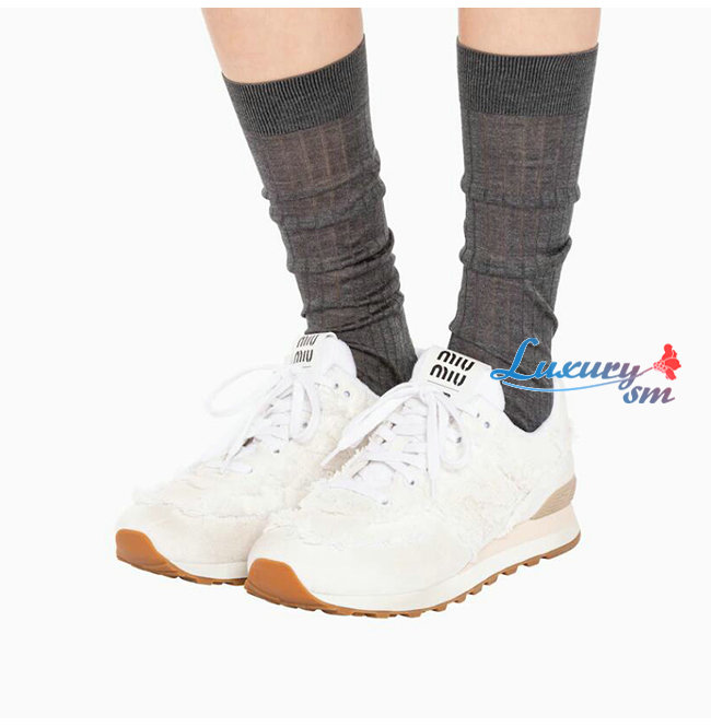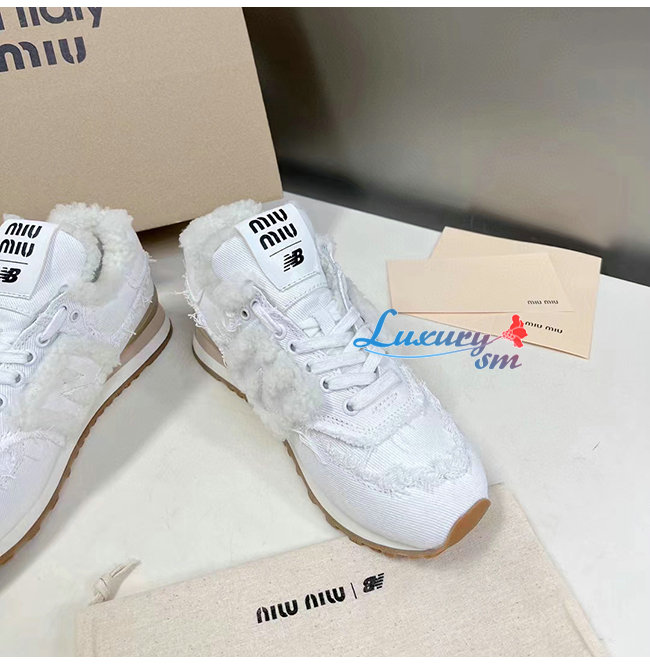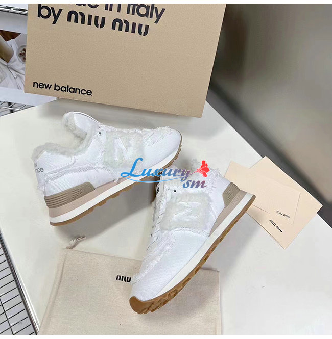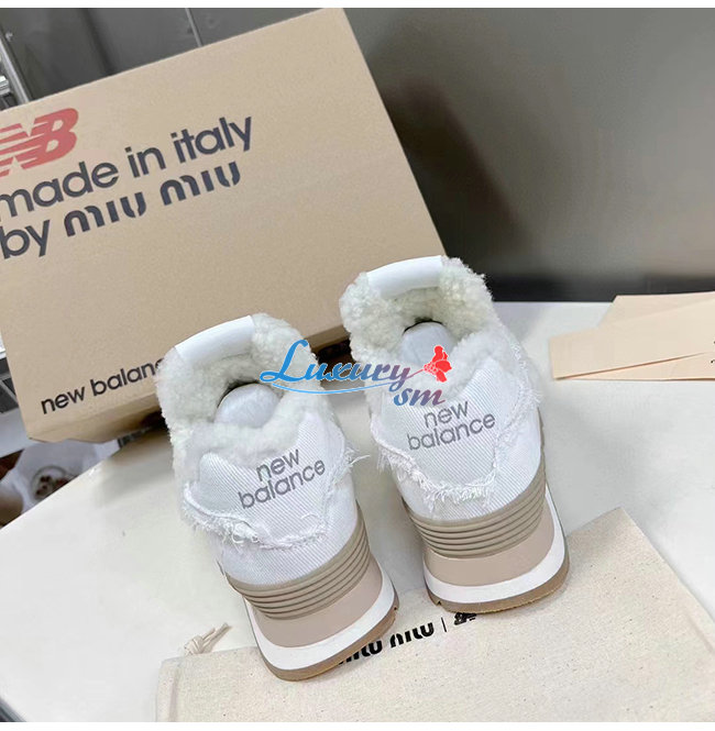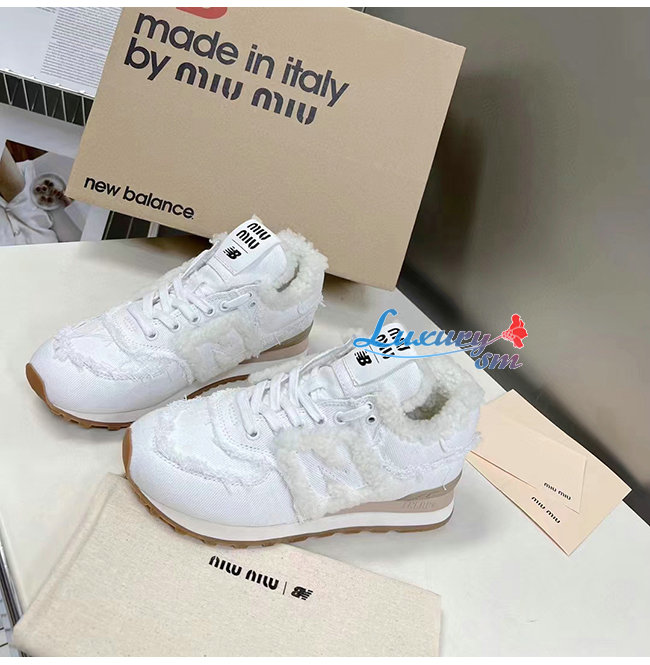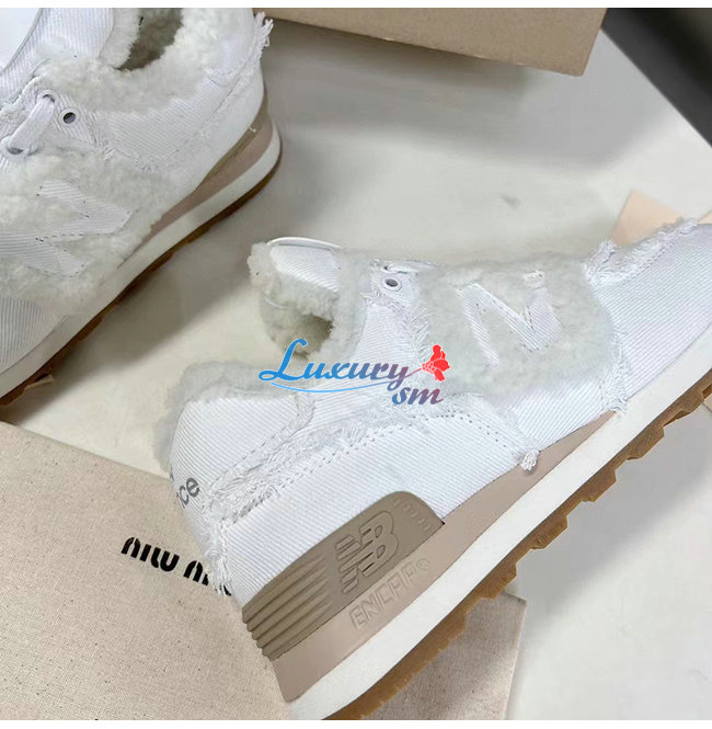 MIUMIU-5E765D 미우미우 화이트 574 New Balance x Miu Miu 데님 스니커즈 여성용