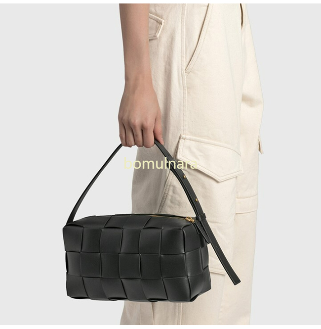 그레인 가죽 소재를 인트레치오 위빙으로 완성한 숄더 백