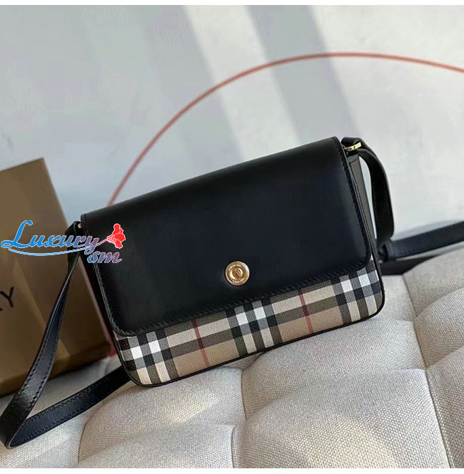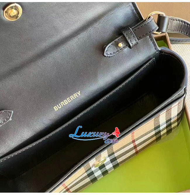 [스페셜오더]BURBERRY-80492431 버버리 블랙 빈티지 체크 레더 미니 노트 백