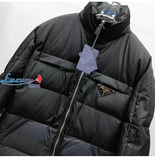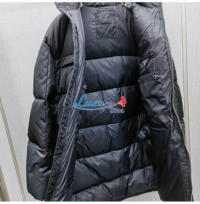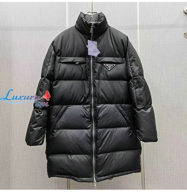 PRADA-12121 프라다 블랙 트라이앵글 로고 롱 패딩 남여공용