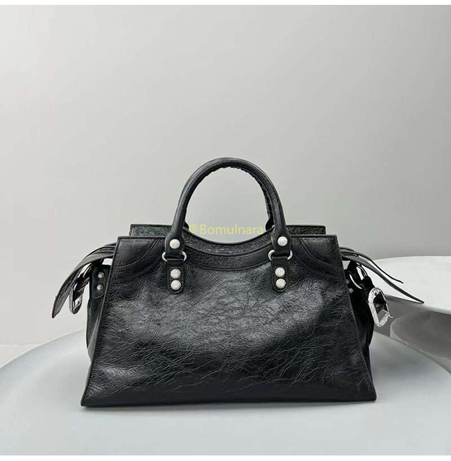 [스페셜오더]BALENCIAGA-700451 발렌시아가 블랙 실버 하드웨어 Neo Cagole City 핸드백 38CM