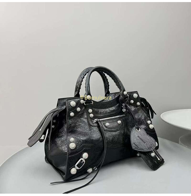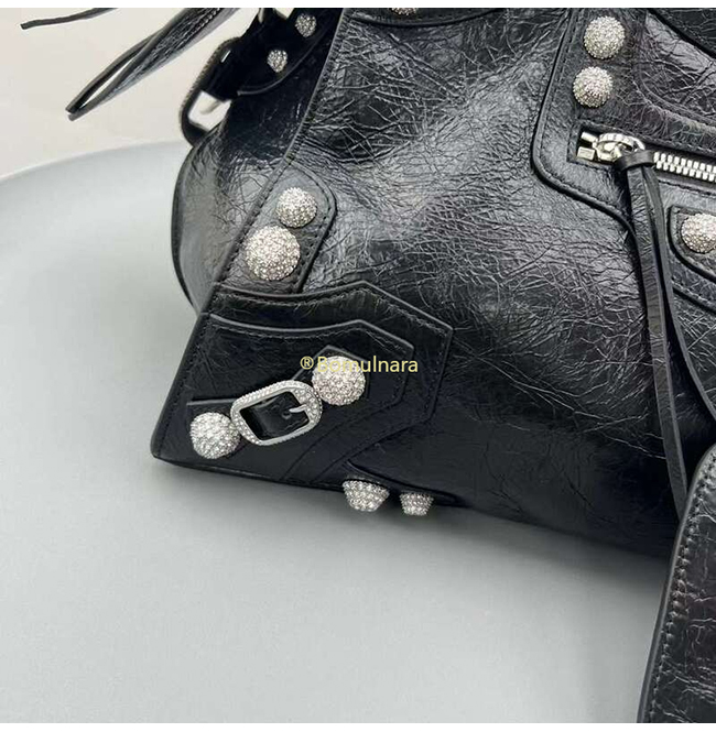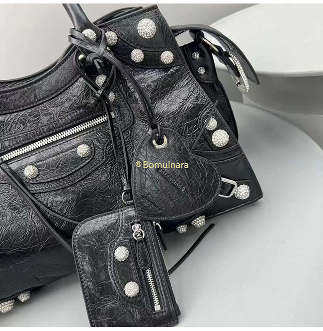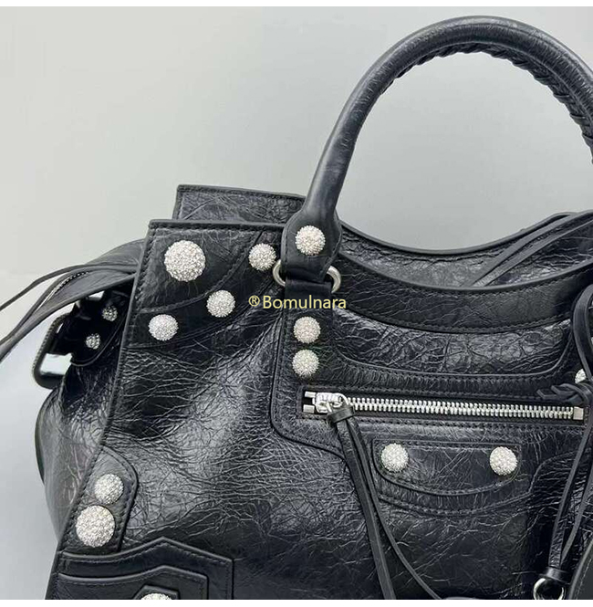 [스페셜오더]BALENCIAGA-7004512 발렌시아가 블랙 라인스톤 NEO CAGOLE CITY 핸드백