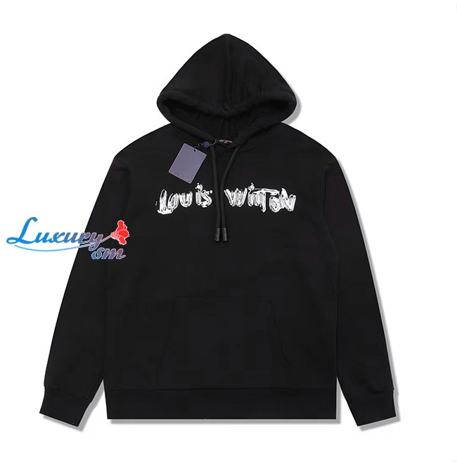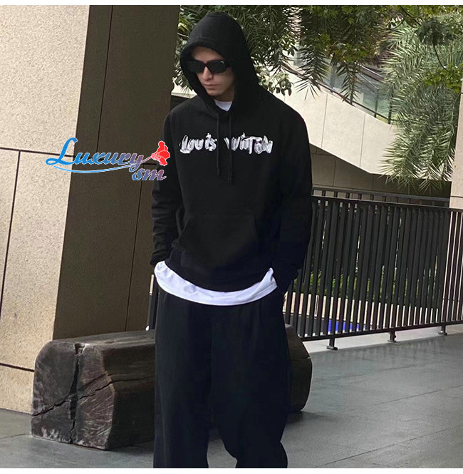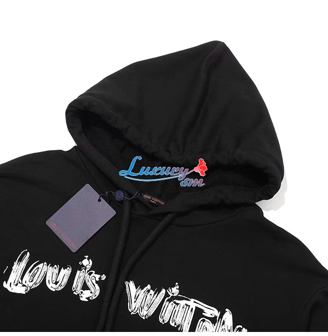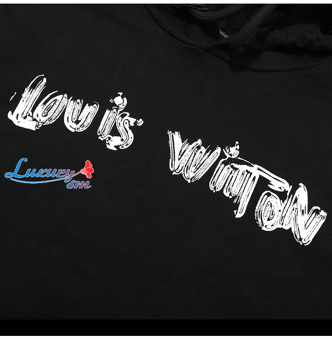 LOUIS VUITTON-12227 루이비통 블랙 프린트 장식 후드 티셔츠 남여공용