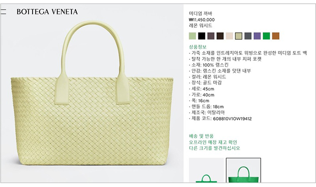[스페셜오더]BOTTEGA VENETA-608810 보테가 베네타 폰덴테 인트레치오 미디엄 까바 가격 : 780,000원