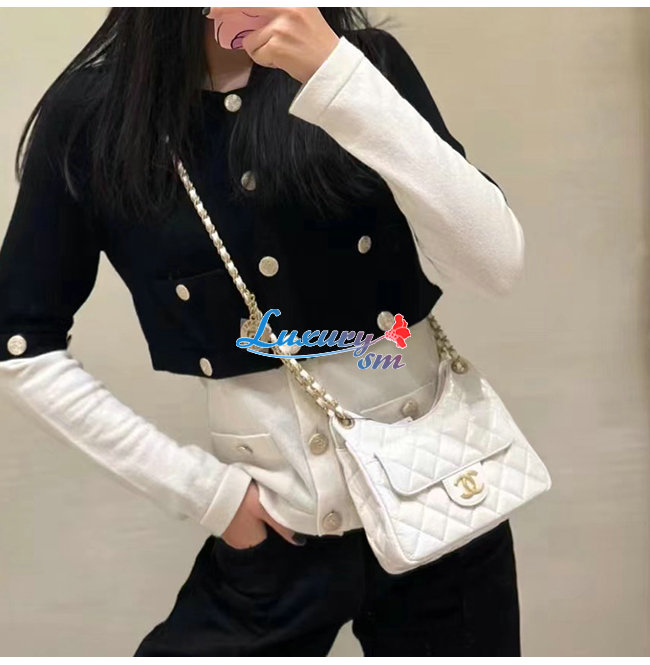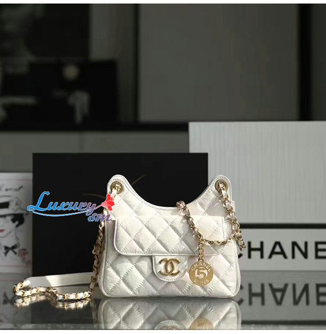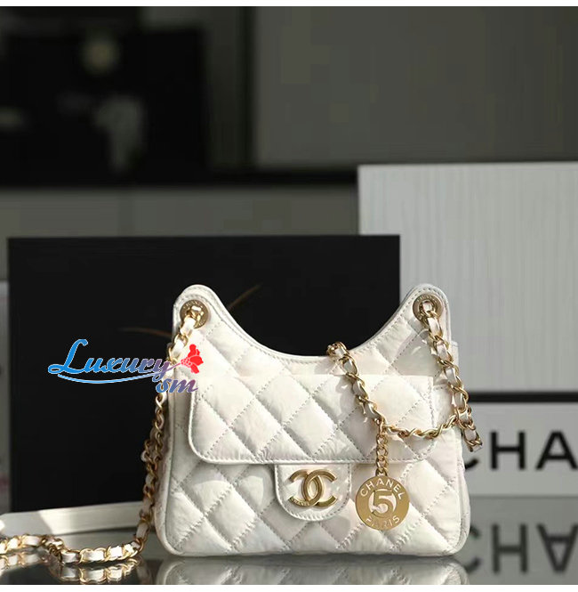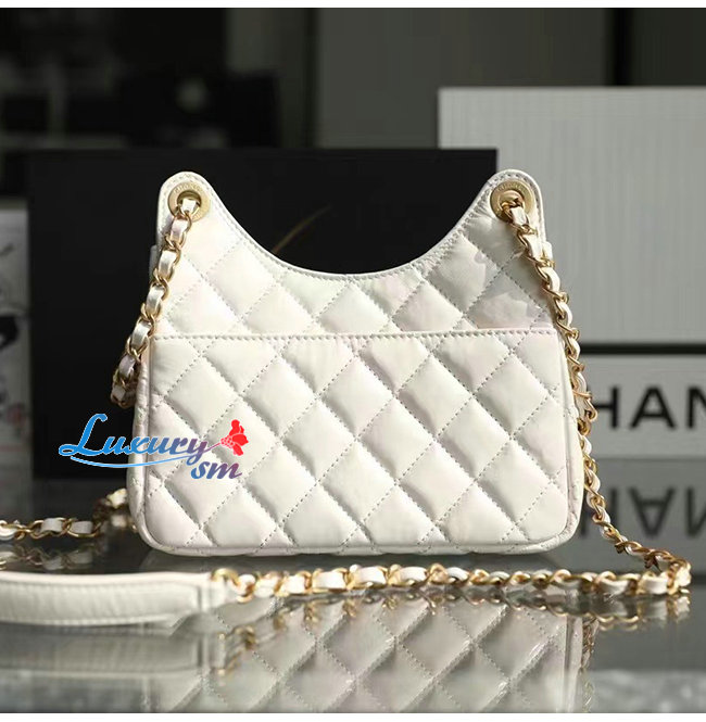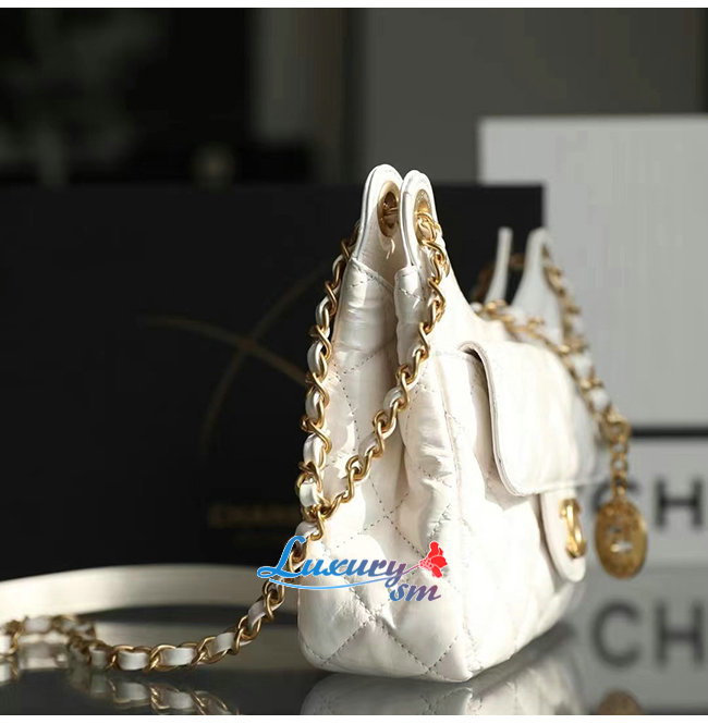 [스페셜오더]CHANEL-AS3710 샤넬 화이트 샤이니 크럼플드 카프스킨 스몰 호보 백