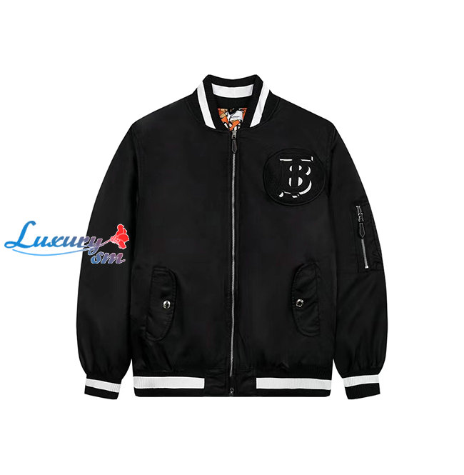 BURBERRY-12238 버버리 블랙 TB 로고 아플리케 장식 베이스볼 재킷 남성용