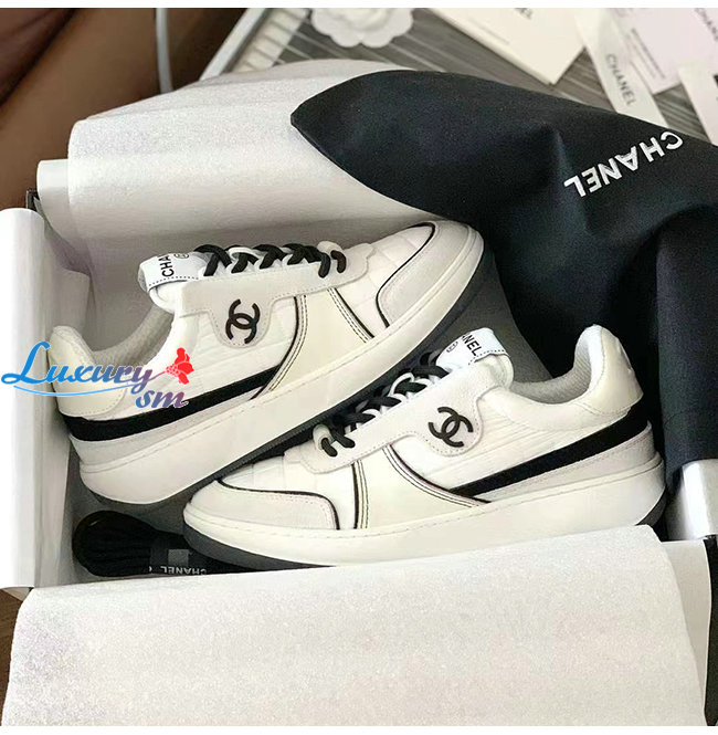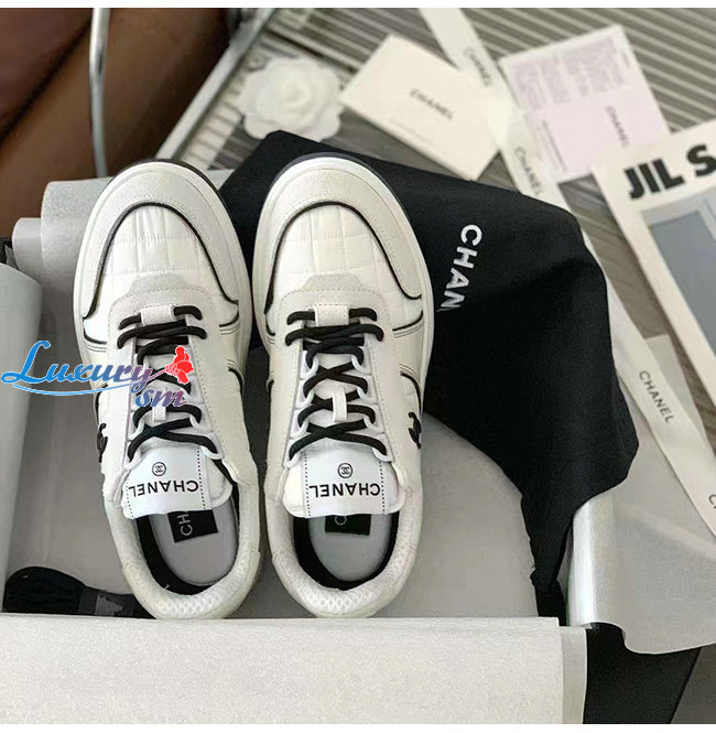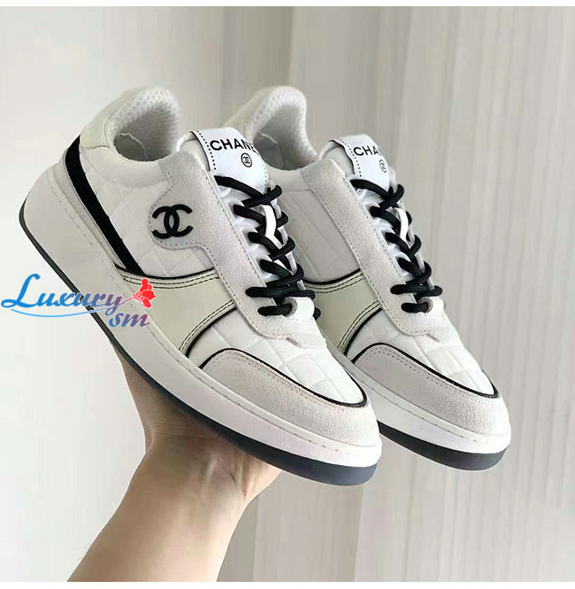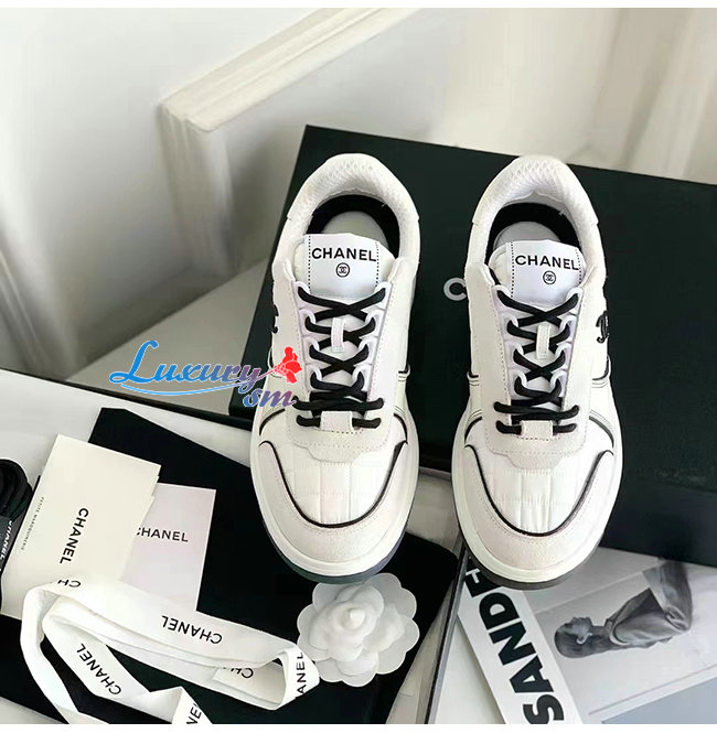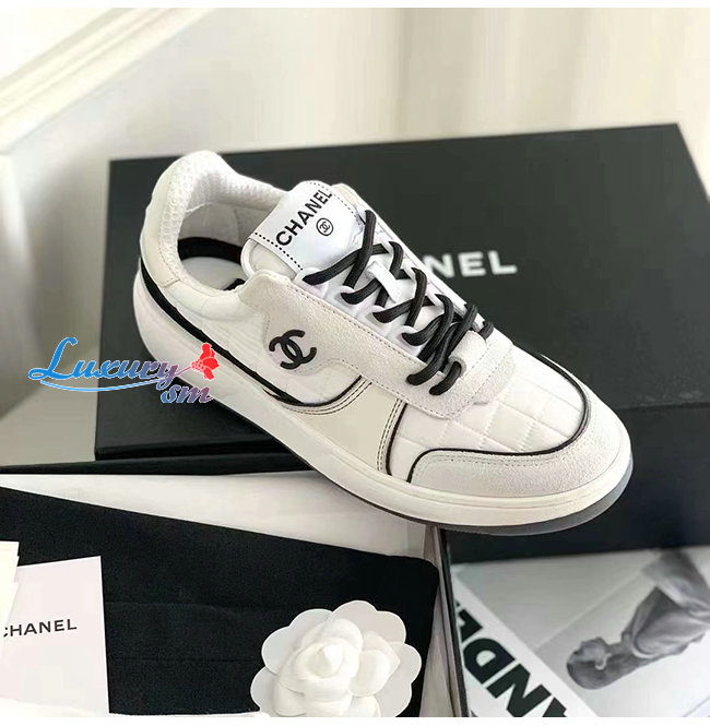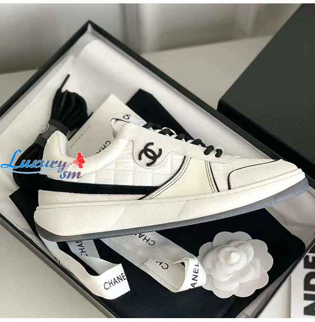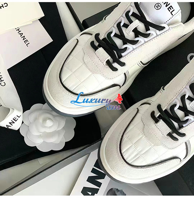 CHANEL-G39802 샤넬 화이트 패브릭 스웨이드 카프스킨 스니커즈 여성용