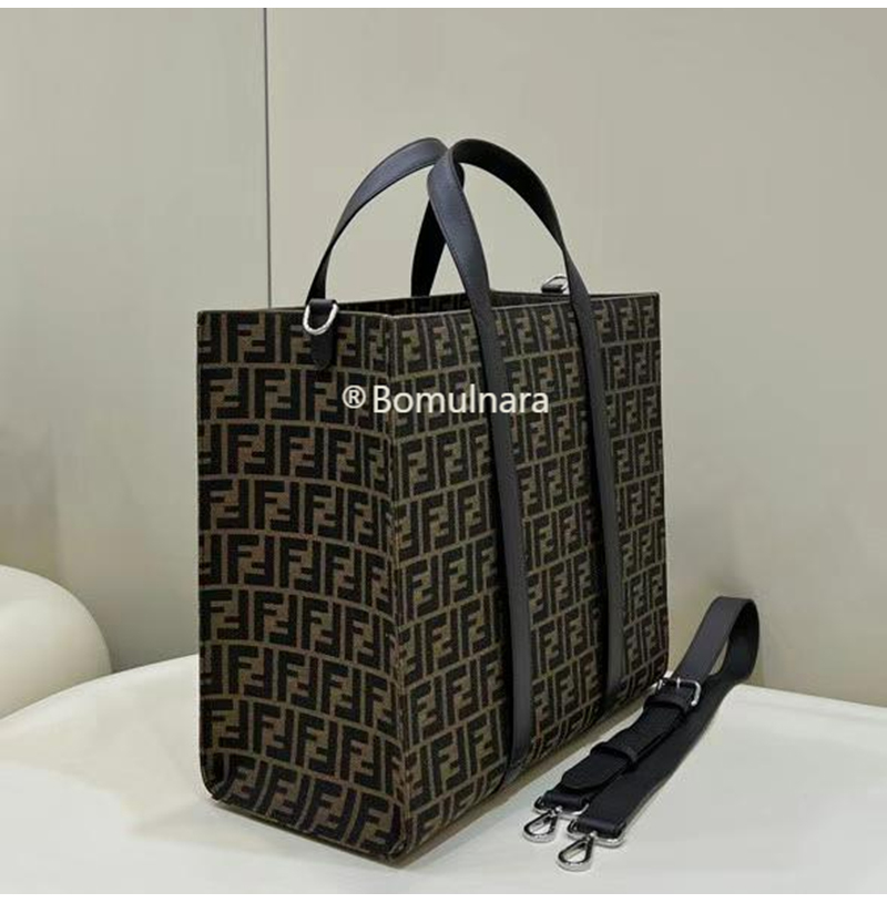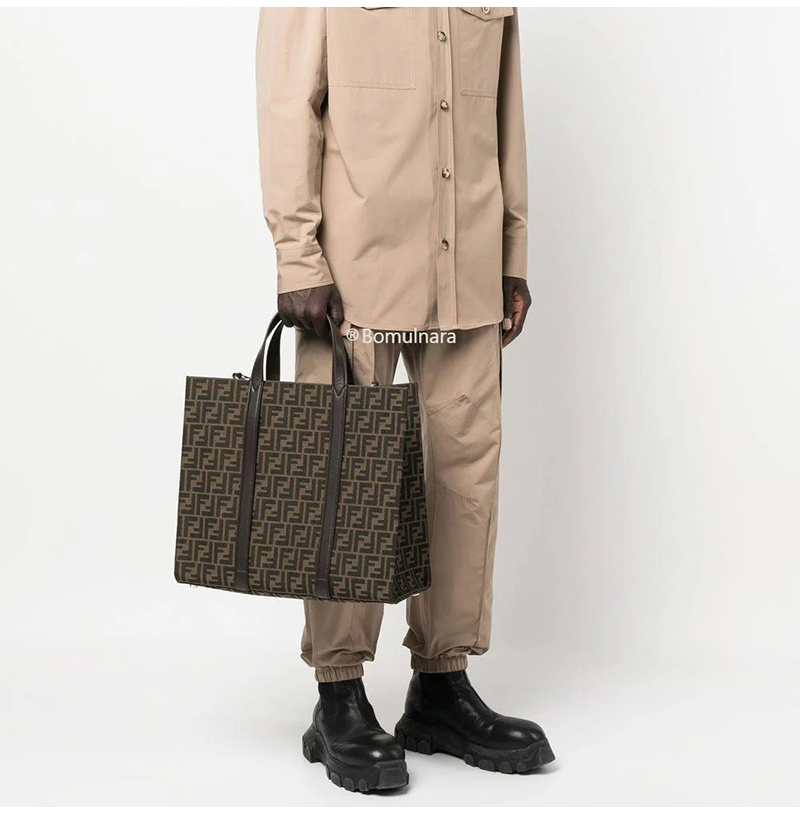 FENDI-펜디 브라운 FF 자카드 패브릭 쇼퍼 백