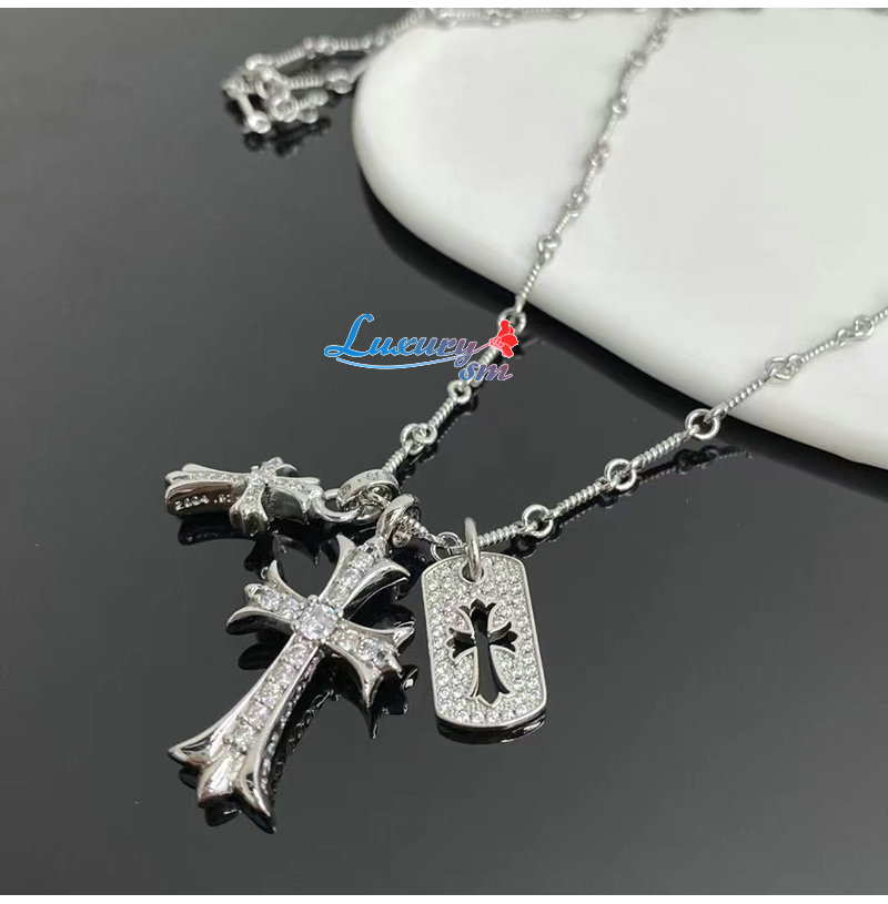 CHROMEHEARTS-6608 크롬하츠 실버 크리스탈 십자가 목걸이