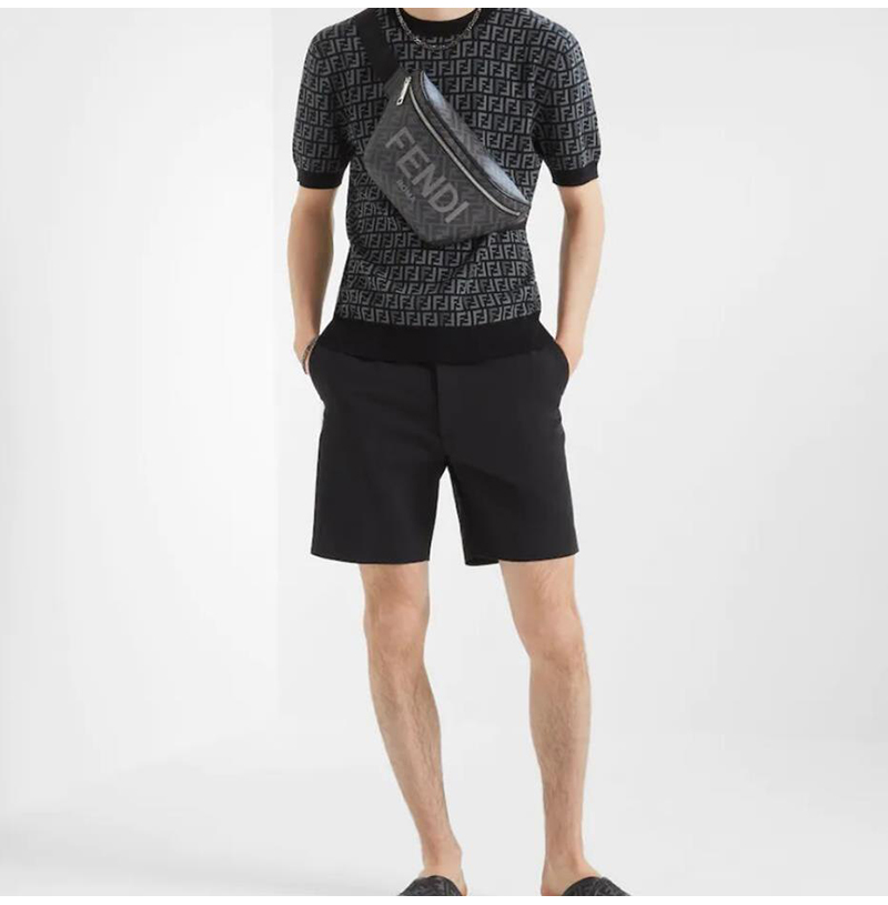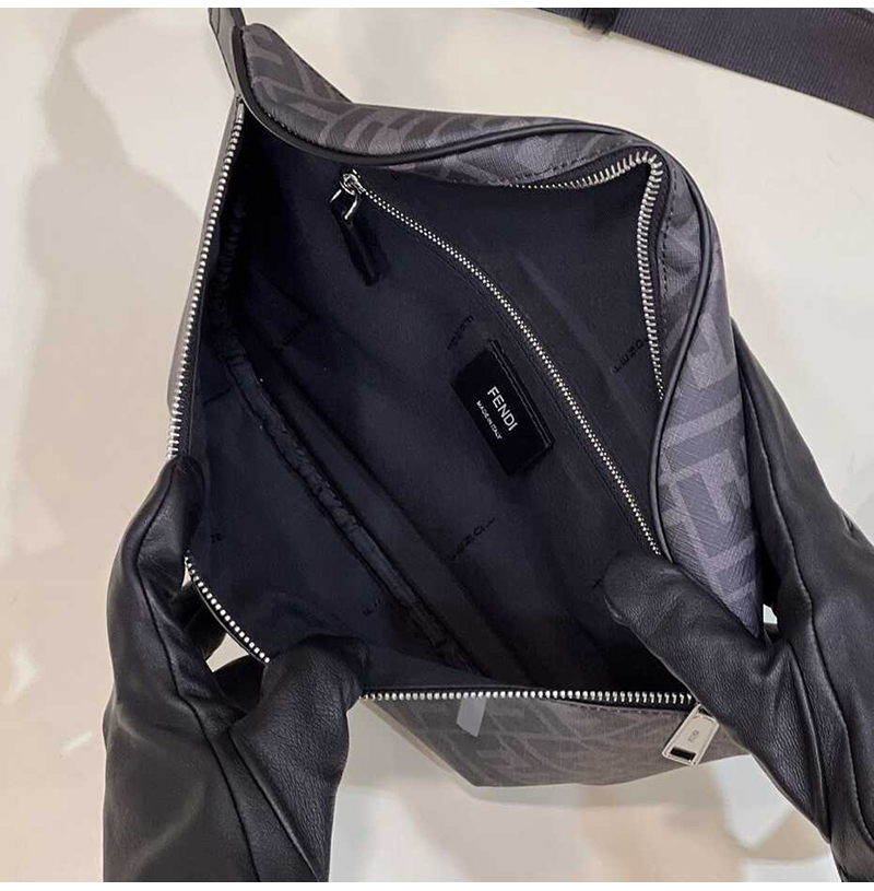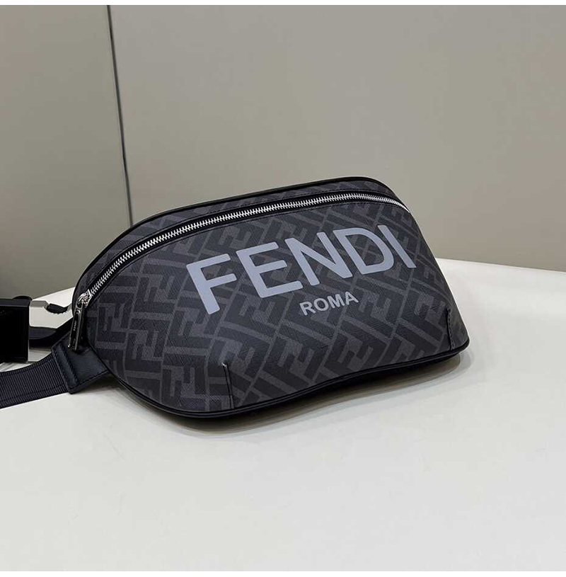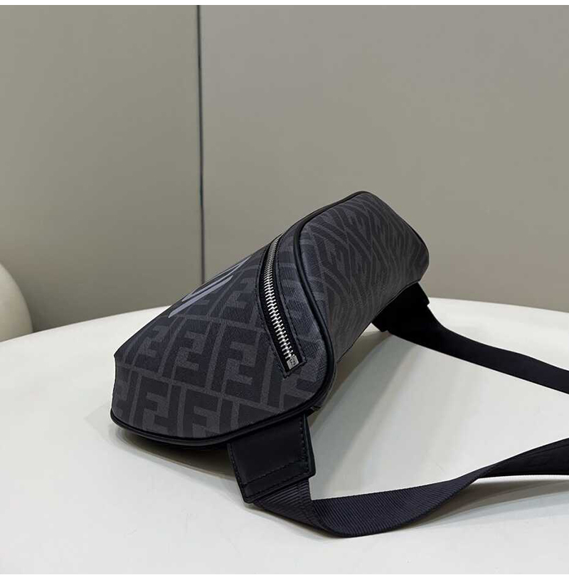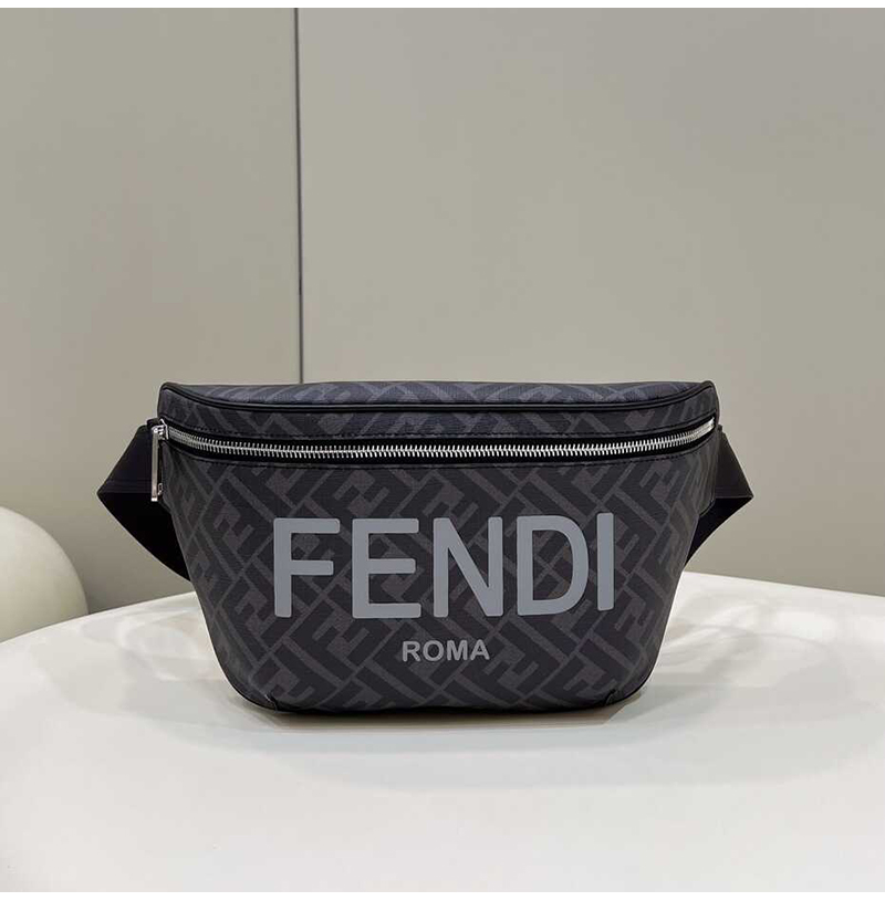 FENDI-7VA562 펜디 블랙 FF 패브릭 벨트 백