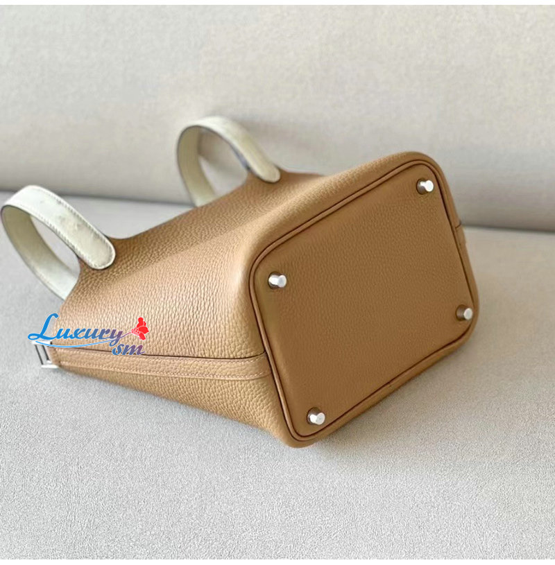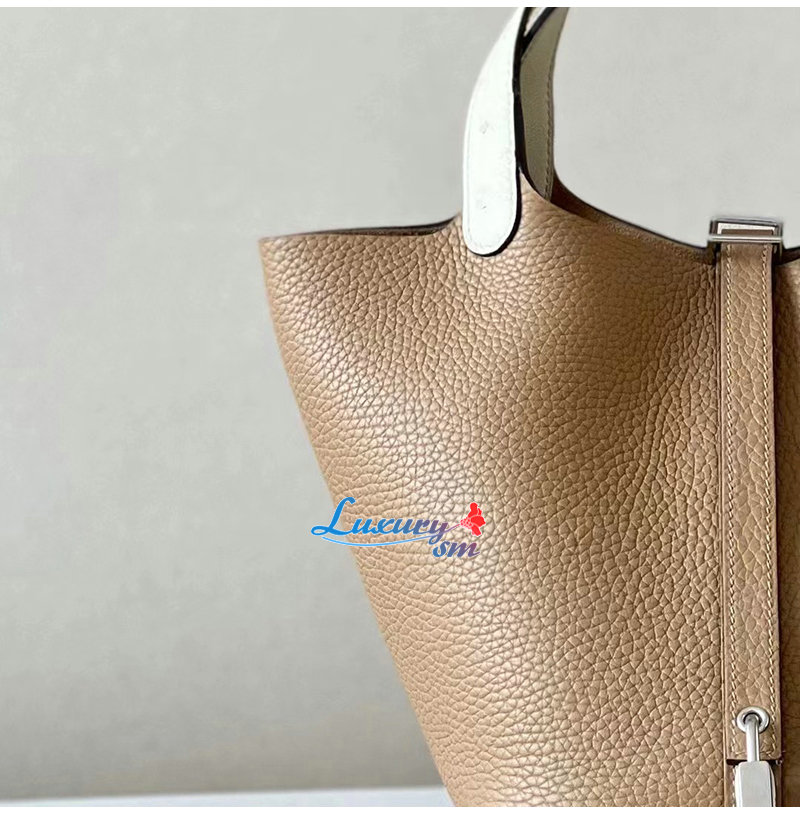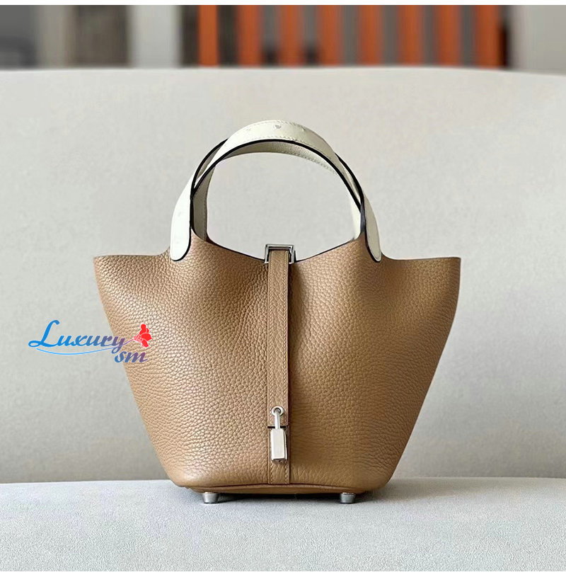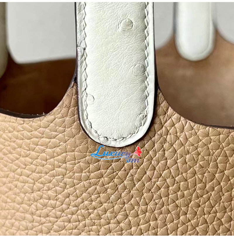 [스페셜오더]HERMES-H056289 에르메스 브라운/화이트 끌레망스 가죽 타조 가죽 핸들 피코탄 Picotin Lock 18 백