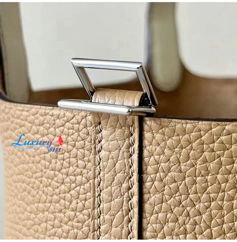 [스페셜오더]HERMES-H056289 에르메스 그레이 끌레망스 가죽 타조 가죽 핸들 은장 피코탄 Picotin Lock 18 백 가격 : 1,300,000원