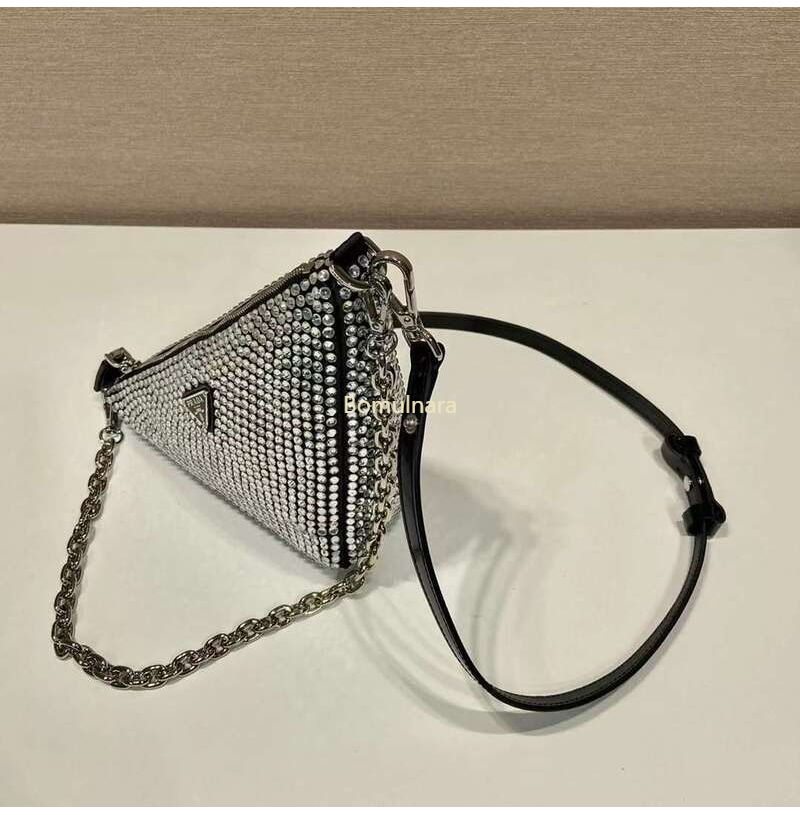 [스페셜오더]PRADA-1BC190 프라다 플래티넘 크리스털 트라이앵글 새틴 미니백 가격 : 380,000원