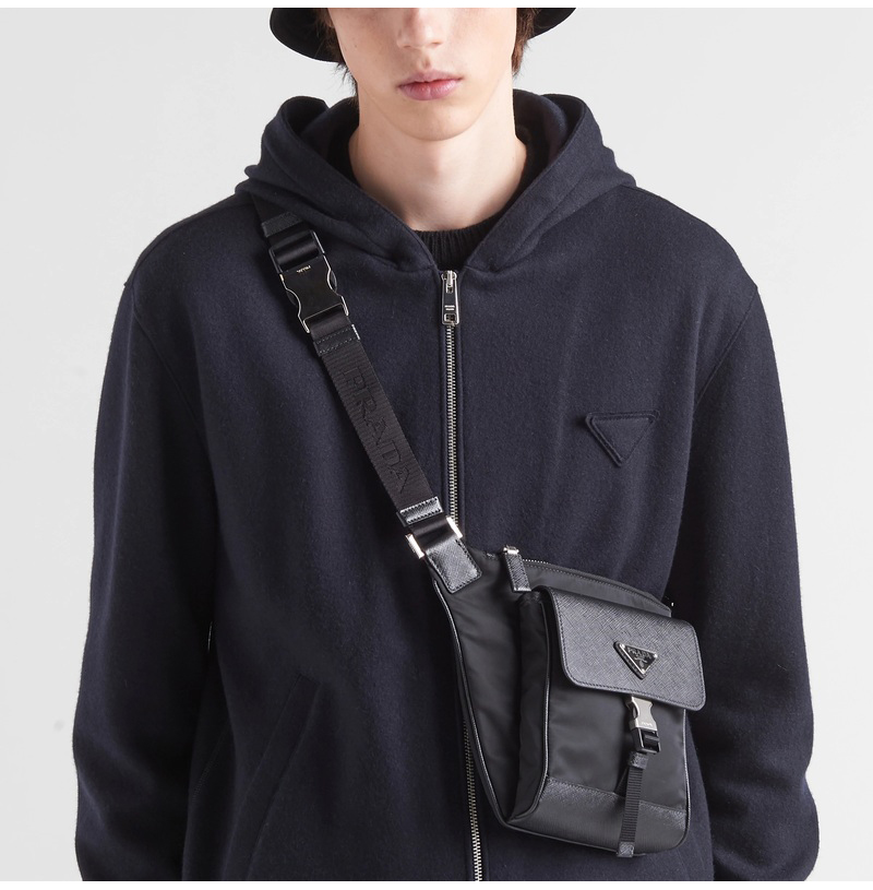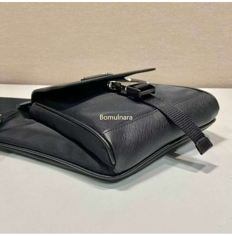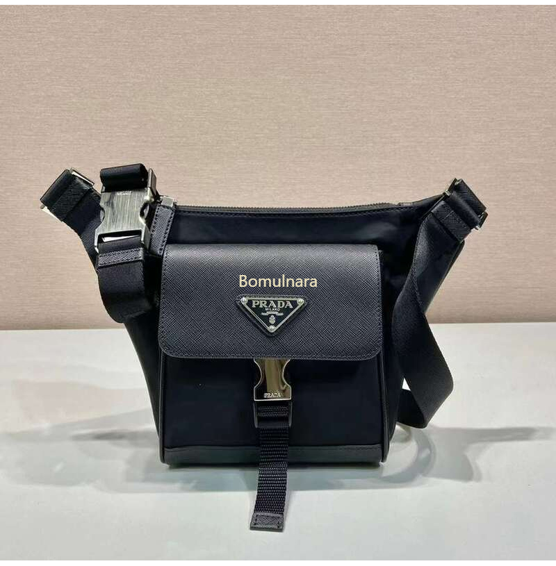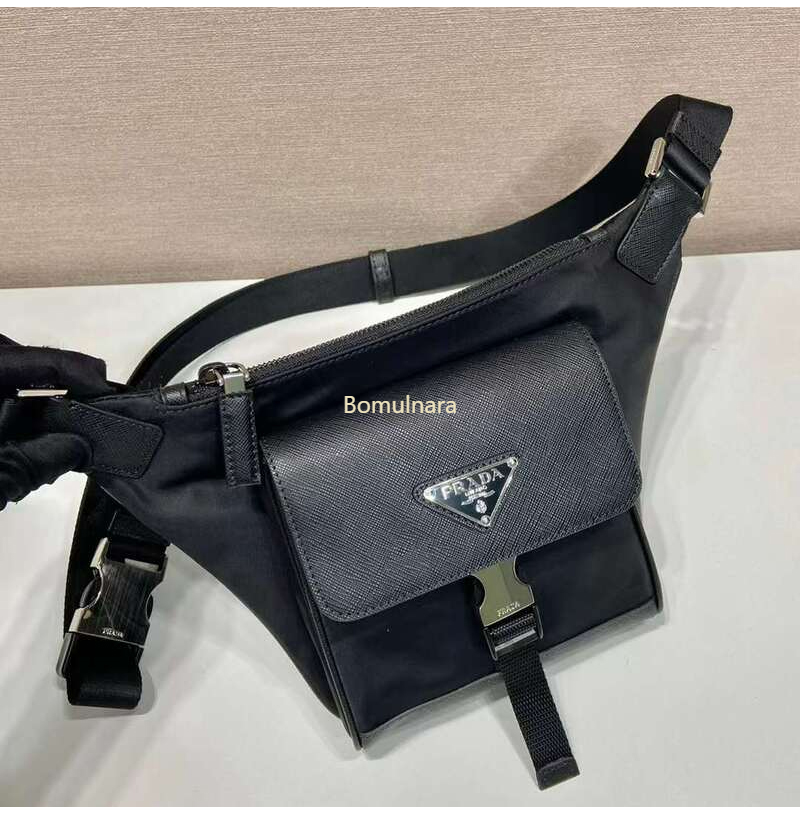 [스페셜오더]PRADA-2VH160 프라다 블랙 리나일론 및 사피아노 하이브리드 숄더 백
