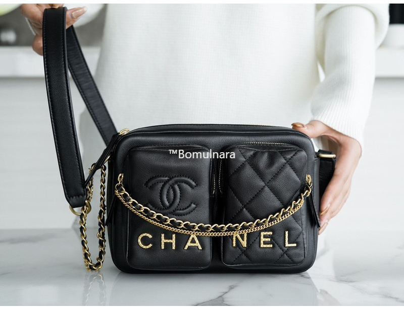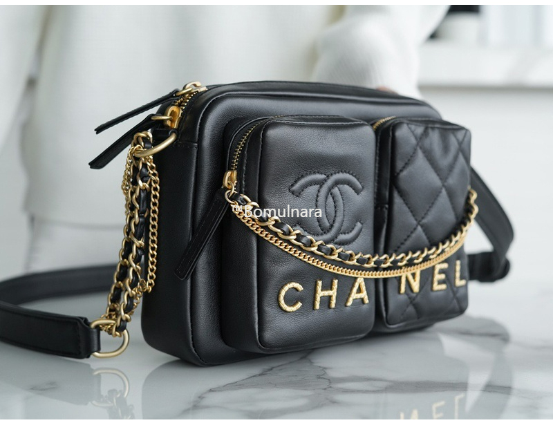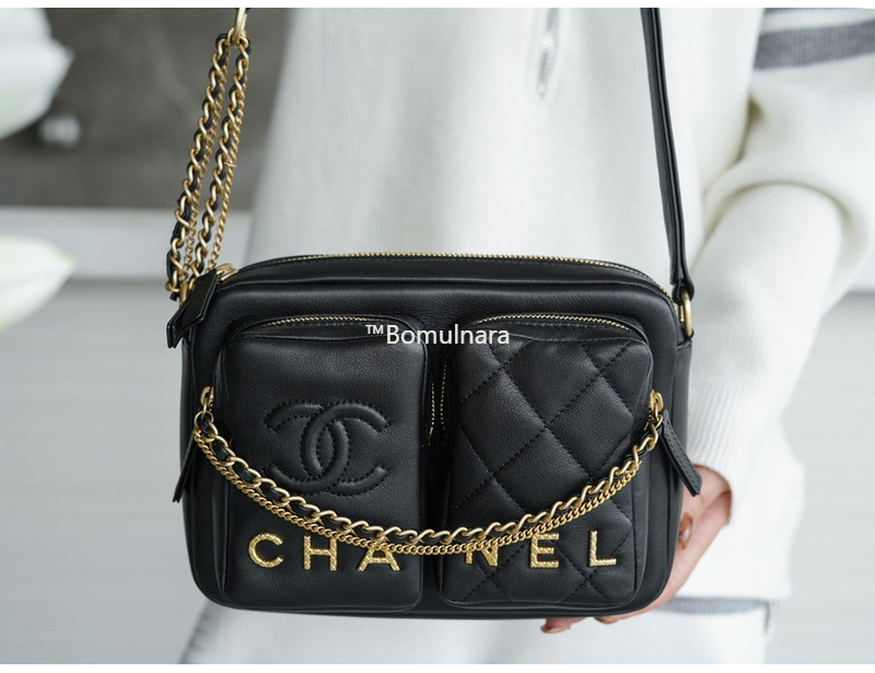 [스페셜오더]CHANEL-AS2923 샤넬 블랙 램스킨 더블 포켓 카메라 숄더 백